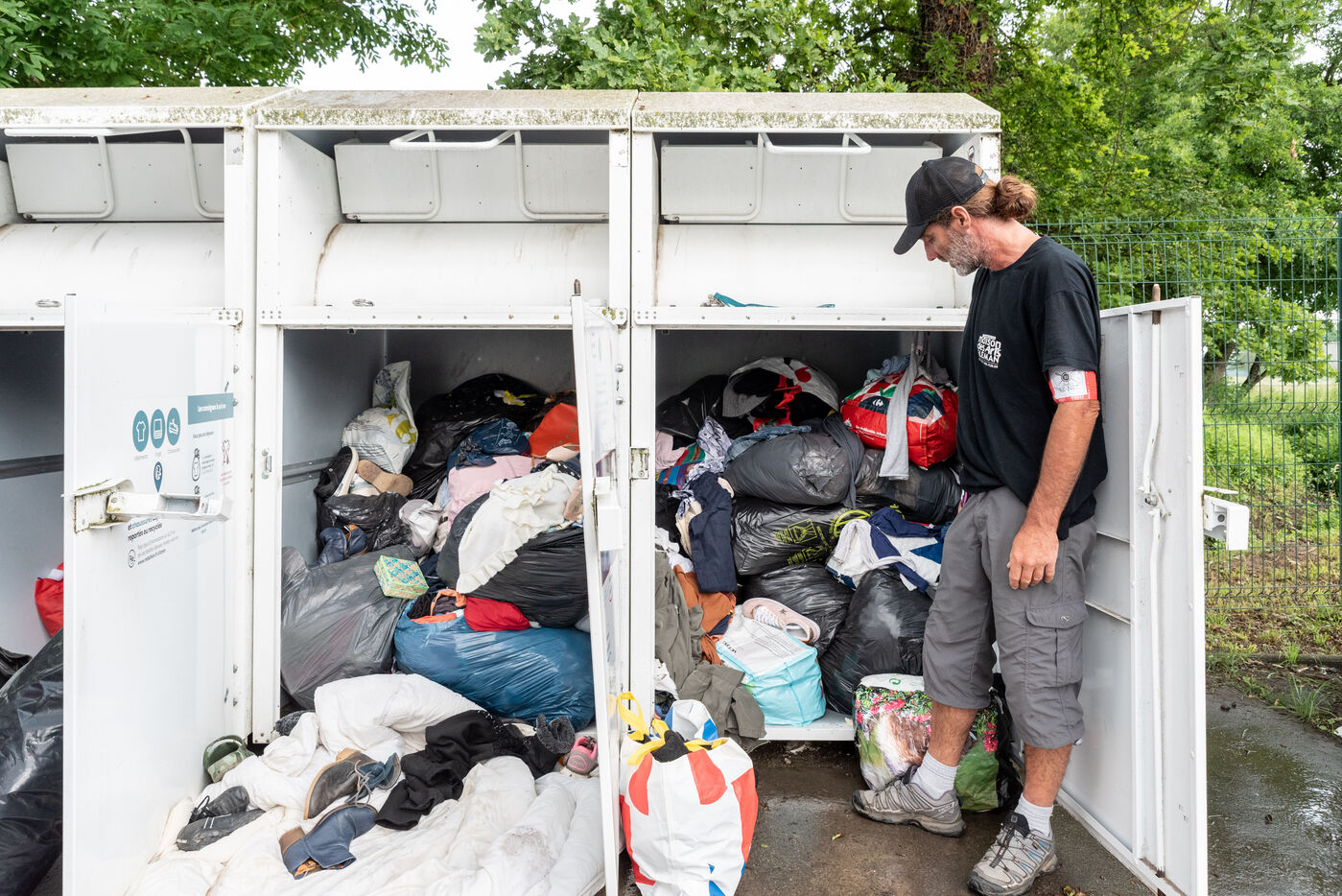 At the wheel of their vans, one by one they open the boxes that line the roads. Always full to bursting, it's the other side of over-consumption that hides behind these doors calling for donations. What happens to the clothes and shoes we think we're doing a good deed for? Who moves these tonnes of goods, sometimes almost new, sometimes non usable? Since 2016, L'Atelier Re-Née in Thonon-les-Bains has been the association responsible for collecting TLC (Textiles, Linens and Footwear) from the Chablais region, where most of the donations are then sent to a sorting centre and the rest to their workshop for a second life locally. Every day, more than two tonnes of goods are collected by two teams of three people. I spent a morning with Sébastien and Fakir, both collection agents.