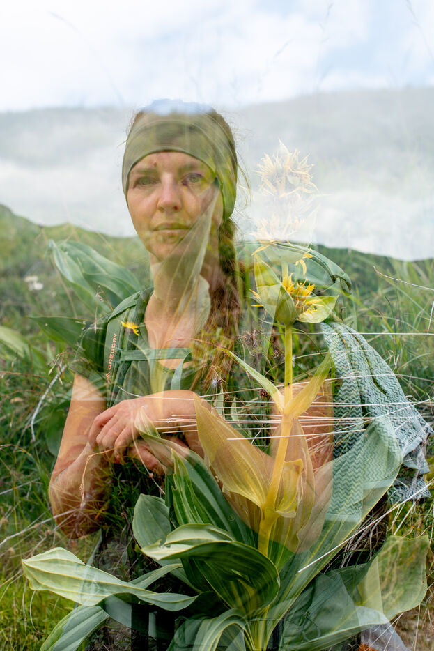 En six semaines, au plus proche de ces écosystèmes, c’est à travers la marche, la contemplation et les rencontres que cette période de changement est documentée en image. Au-delà des randonneurs, nombreux sont les artistes, scientifiques et employés des parcs nationaux qui habitent la montagne dans l’espoir de sensibiliser, de réunir la théorie et la pratique, les paroles et les actes. Et les gardien(ne)s de refuges, témoins directs de ces évolutions sont devenus malgré eux les défenseurs de ces milieux si fragiles. Pour mettre en avant la place de la nature dans le quotidien de ces hommes et femmes croisés sur le chemin, j’ai réalisé des portraits en double exposition lors de la prise de vue. Ce procédé permet de rendre visible le lien fort et précieux qu’ils ont avec la biodiversité et leur volonté d’agir pour la préserver.