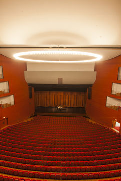 The theatre is spring-mounted to effectively eliminate the parasitic vibrations of the nearby railway line.