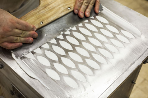 The calisson is a confection made of a fine paste of candied melon (or other candied fruit) and almonds crushed together, topped with royal icing and placed on a base of unleavened bread. This candy, often flavoured with orange blossom and shaped like a shuttle, has been a speciality of Aix-en-Provence since the 15th century.