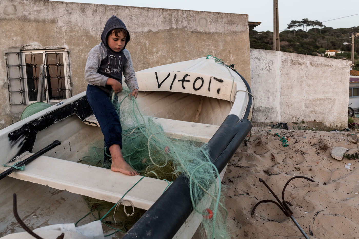 Fonte da Telha is a popular touristic beach located south of Lisbon. Surfers and holiday makers like to come here to rest and enjoy the sea without noticing that a few hundred meters from here a small village of fishermen has settled in a long time ago, sometimes directly on the sand of the beach.