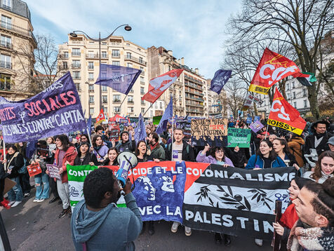 Thousands of people gathered on the demonstration on the International Women's Day organized by various groups, signatories of the GreveFeminist appeal in Paris, capital of France on March 8, 2024.