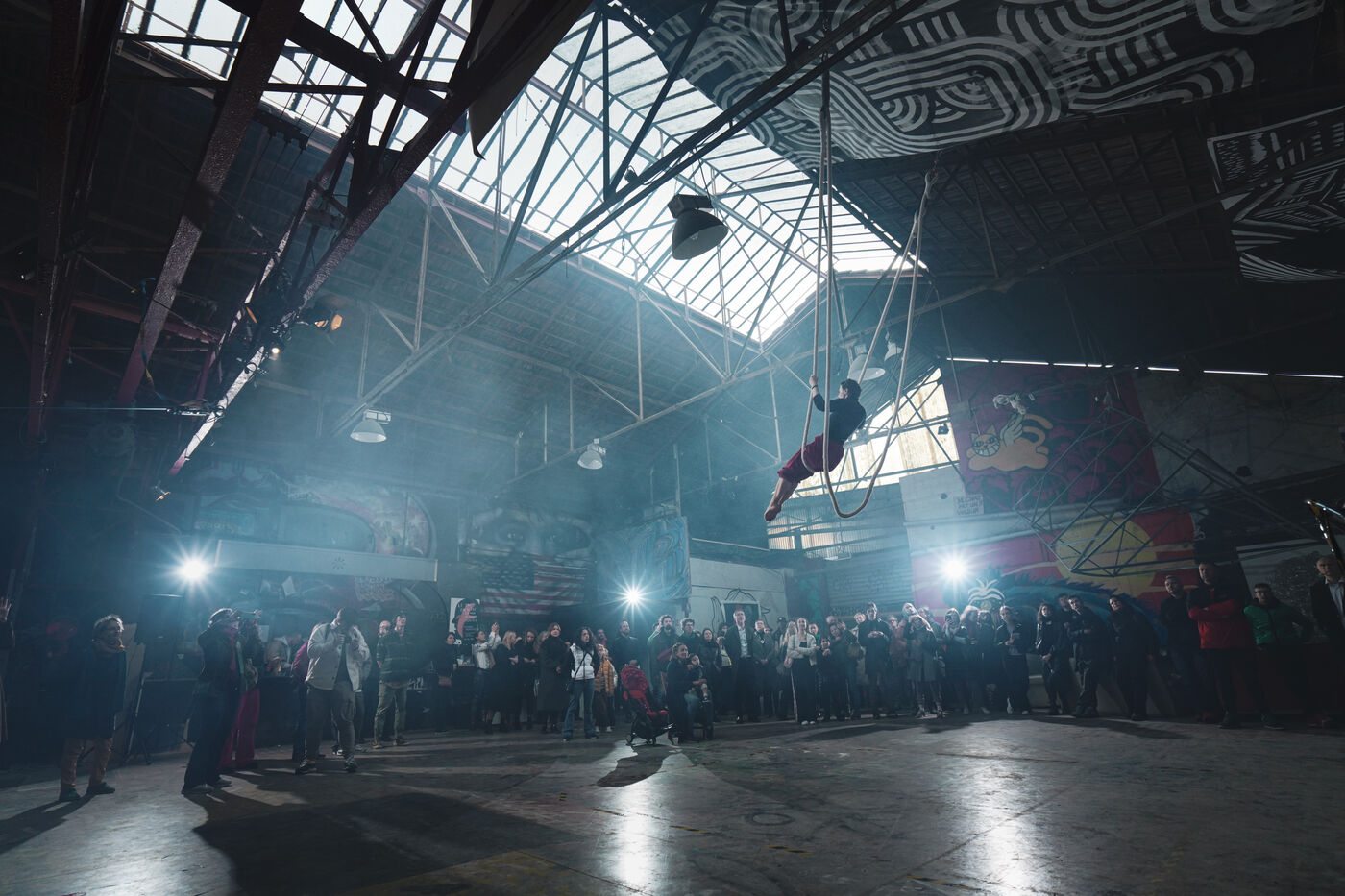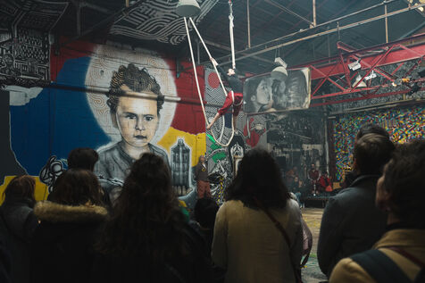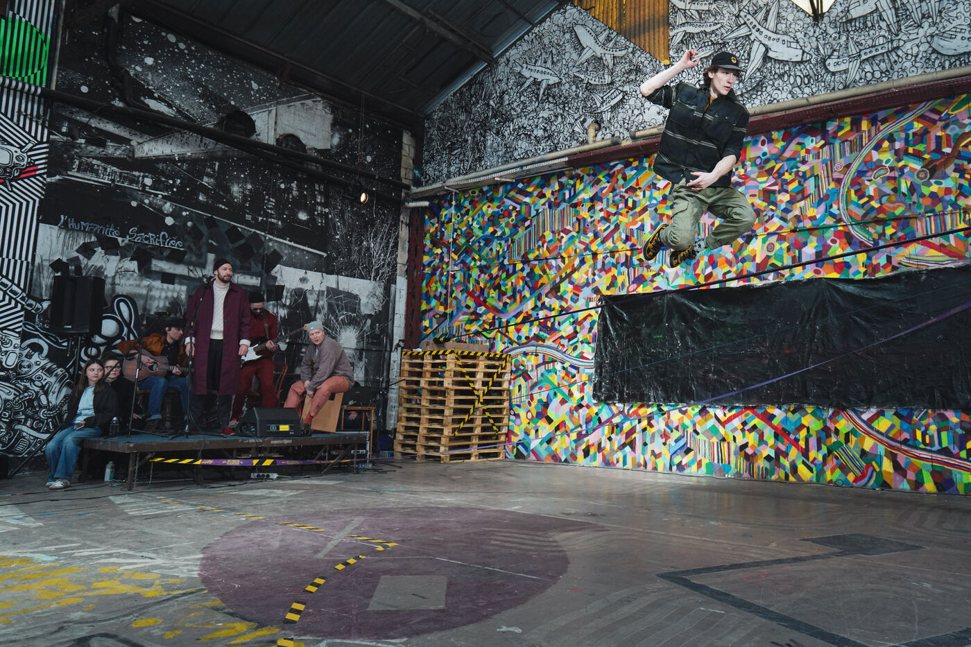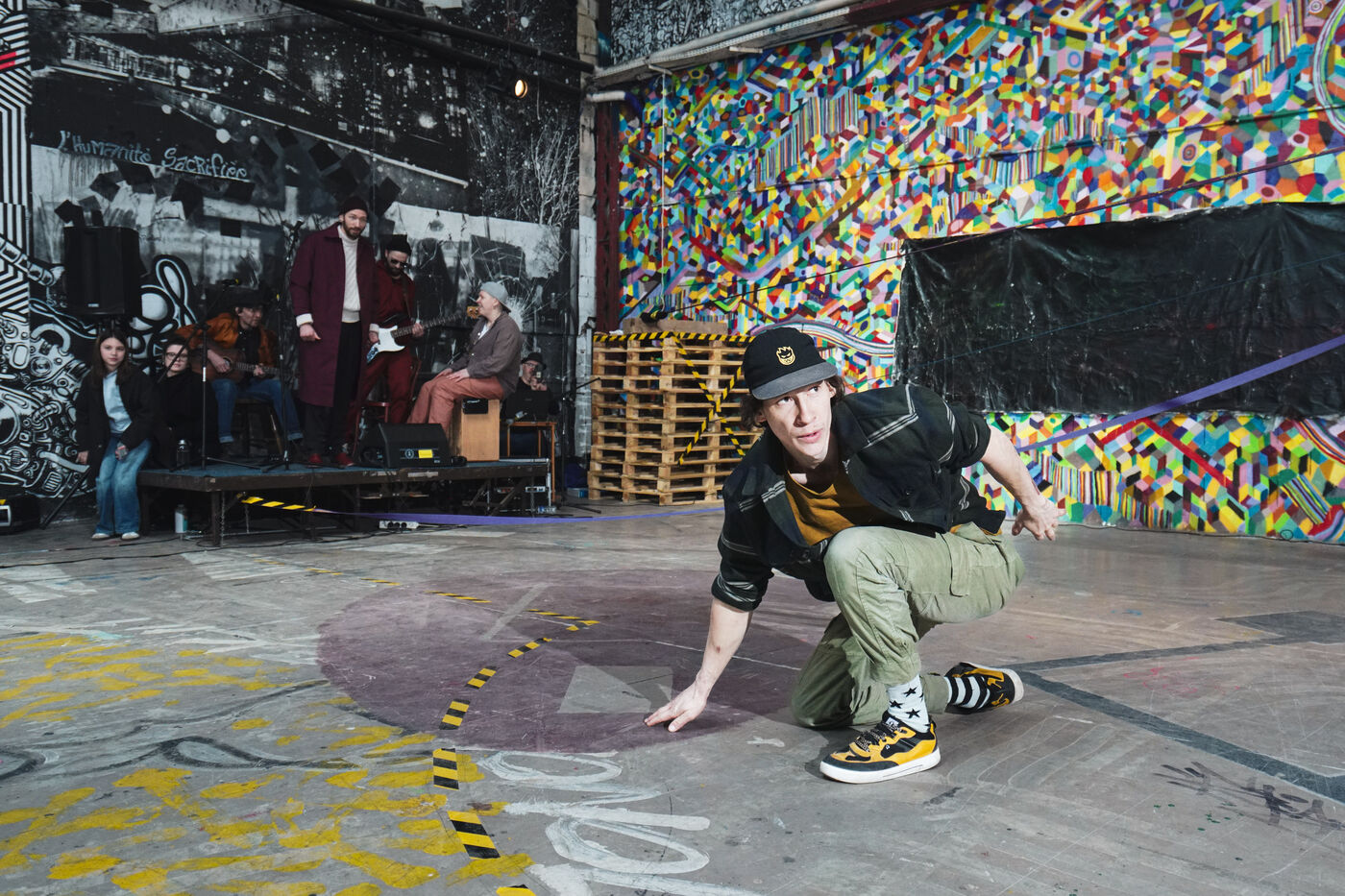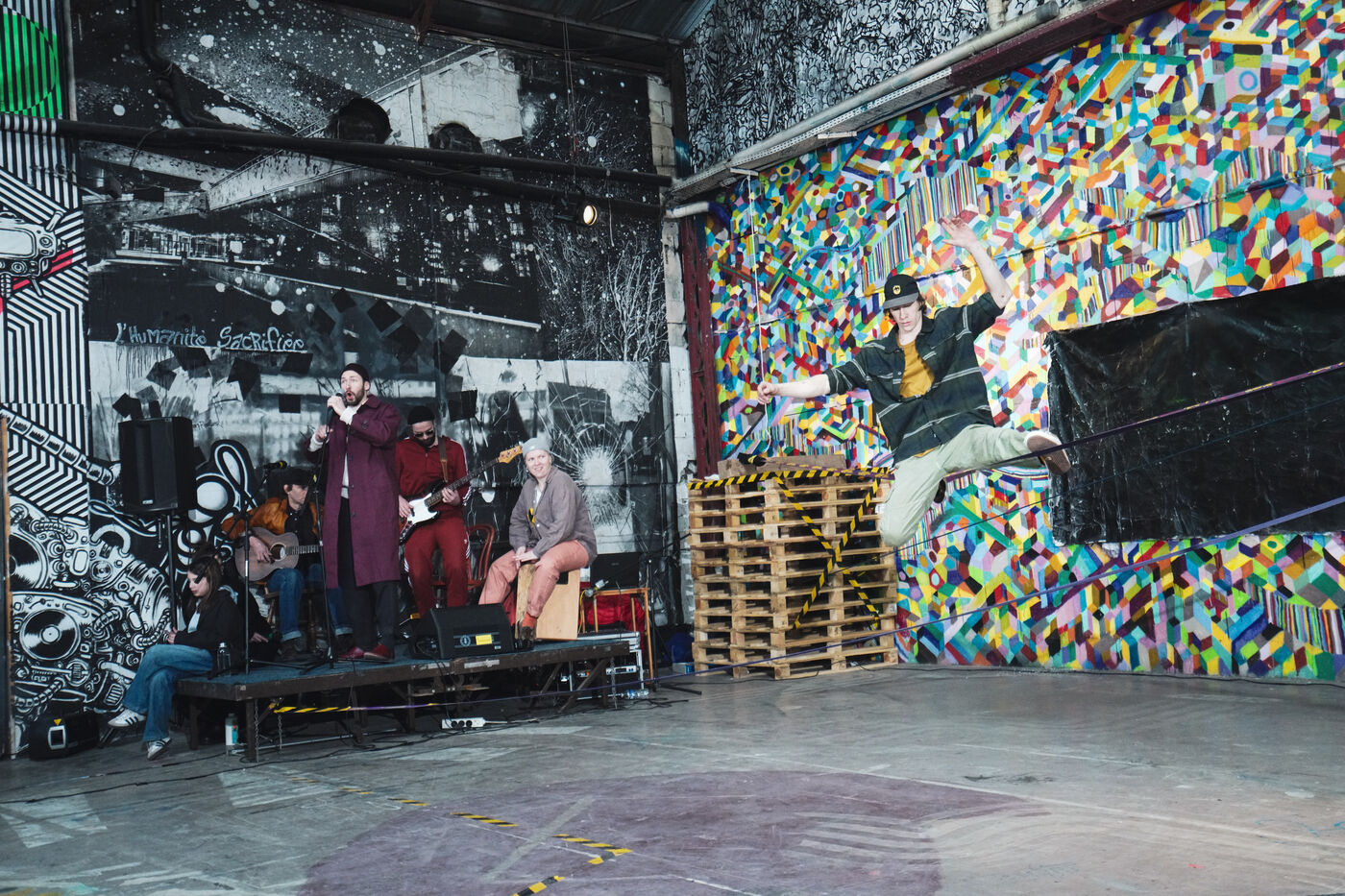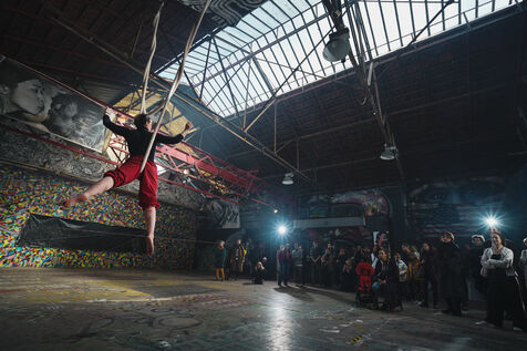 Première édition du festival Le Doc En Scène La Voix Humaine Ukraine où des artistes d'Ukraine et de Russie ont offert au public des spectacles issus de différentes branches artistiques comme le théâtre, le cirque ou les arts visuels. Espace Albatros à Montreuil, près de Paris, le 23 mars 2024.