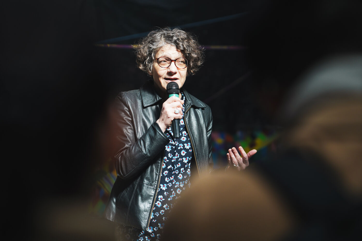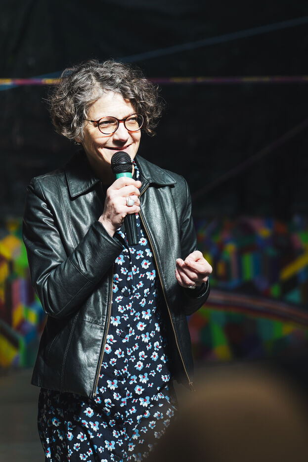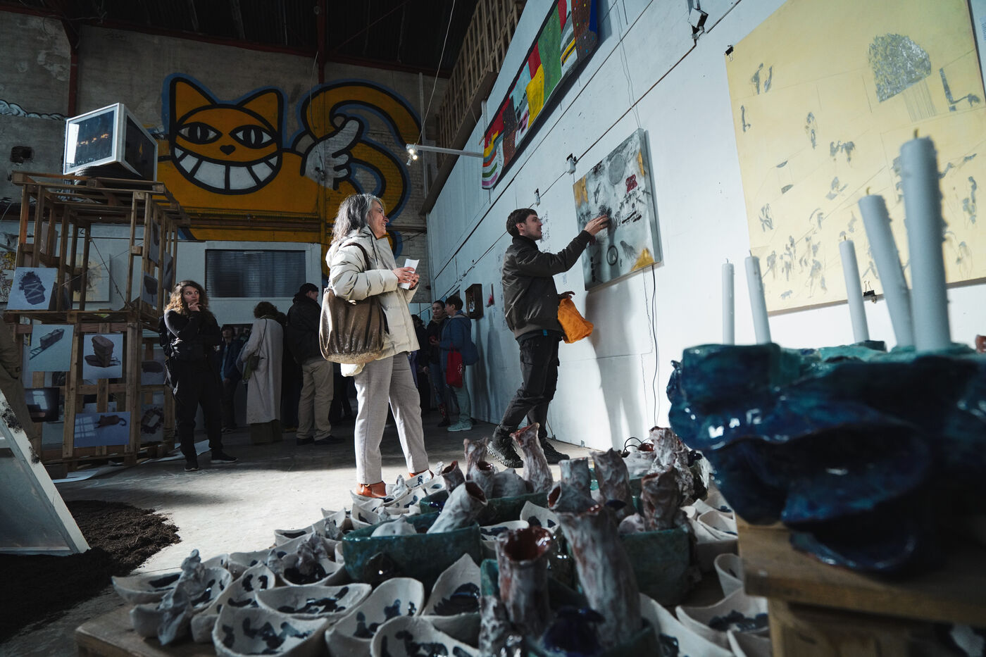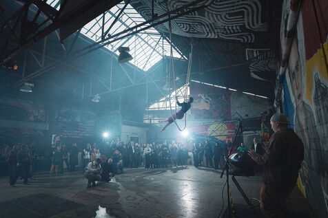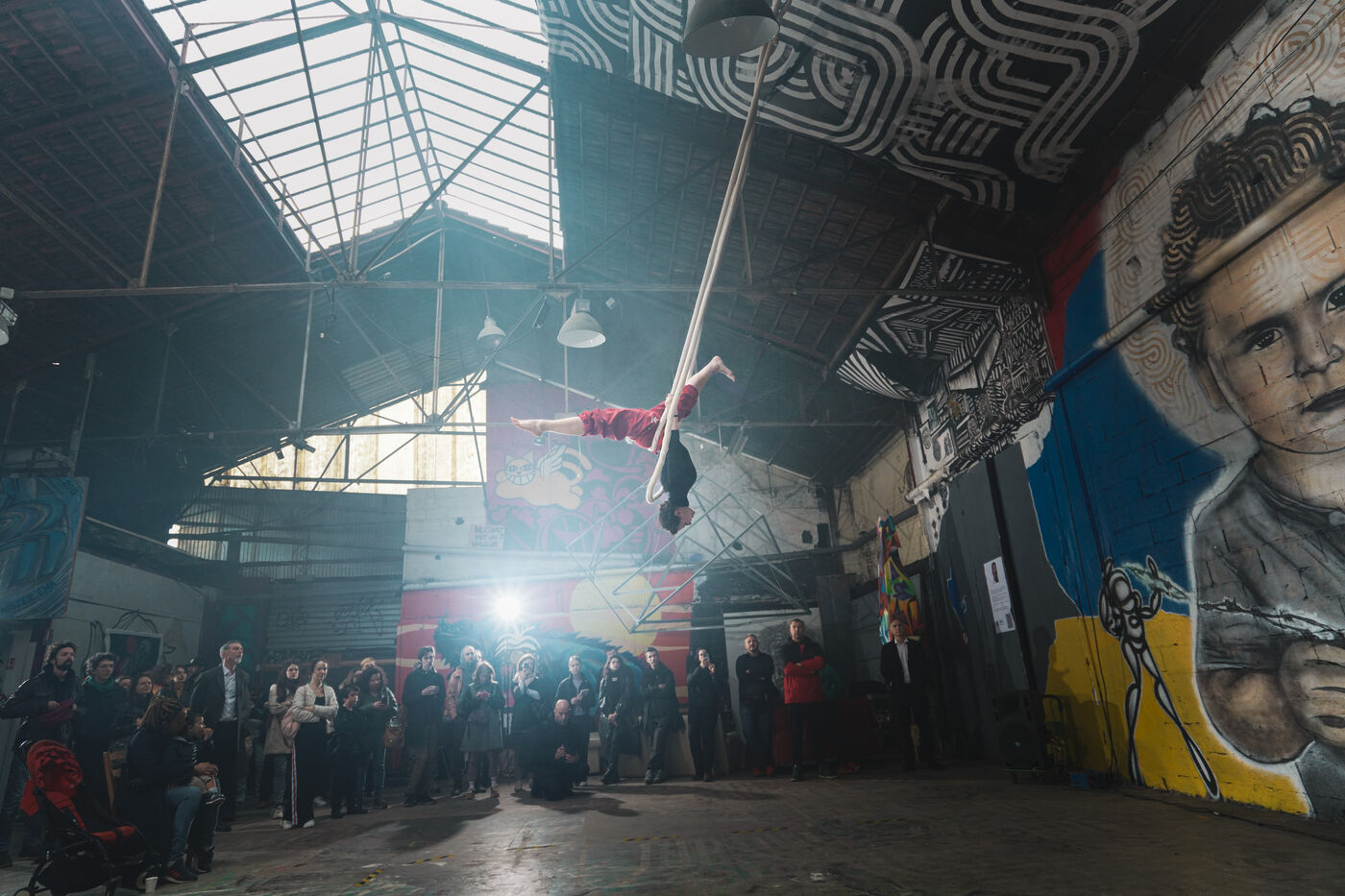 Première édition du festival Le Doc En Scène La Voix Humaine Ukraine où des artistes d'Ukraine et de Russie ont offert au public des spectacles issus de différentes branches artistiques comme le théâtre, le cirque ou les arts visuels. Espace Albatros à Montreuil, près de Paris, le 23 mars 2024.