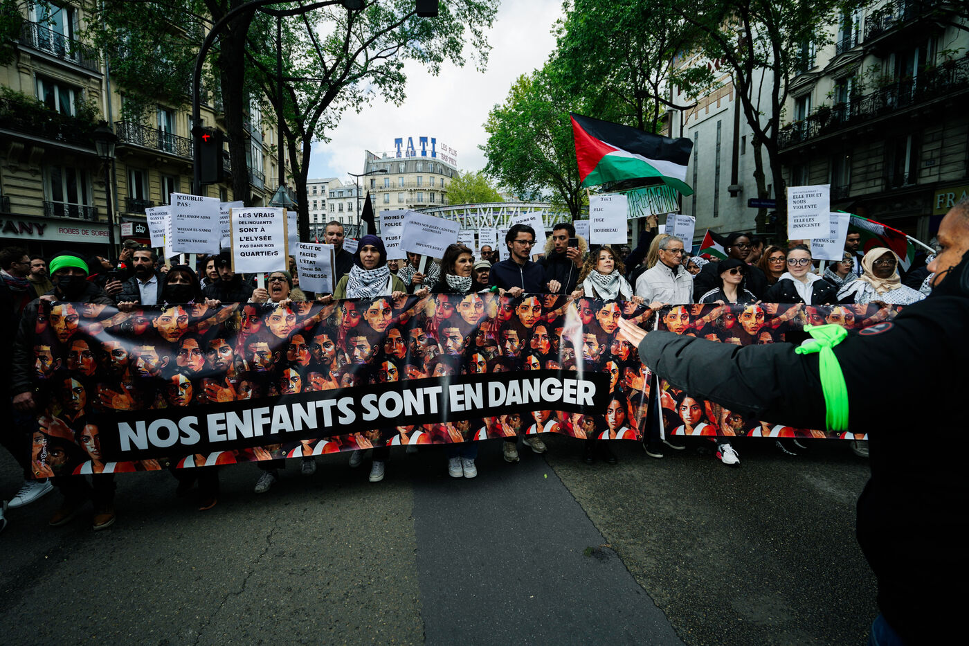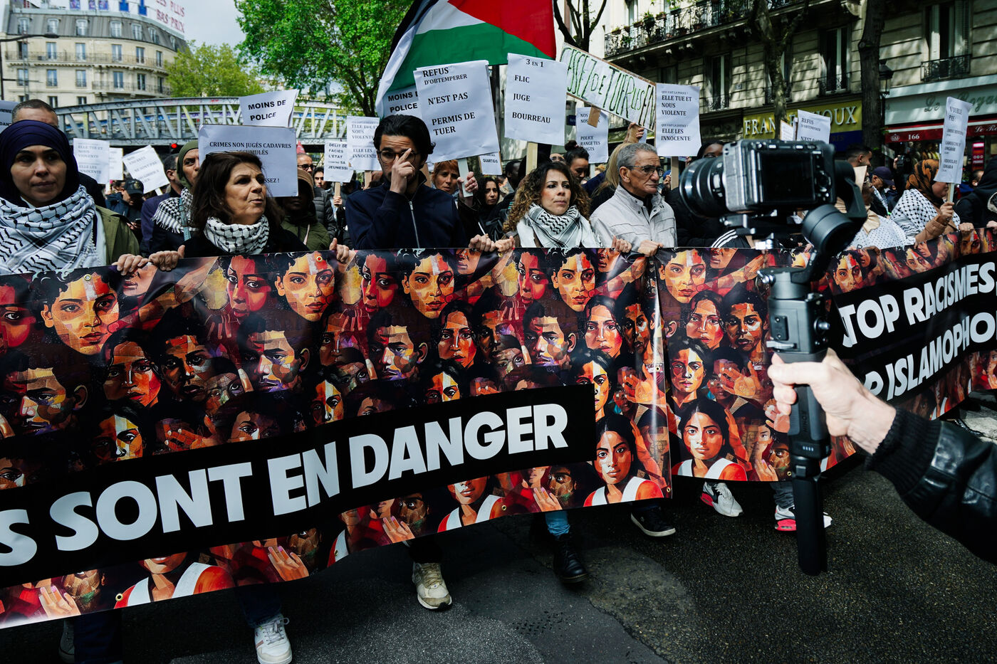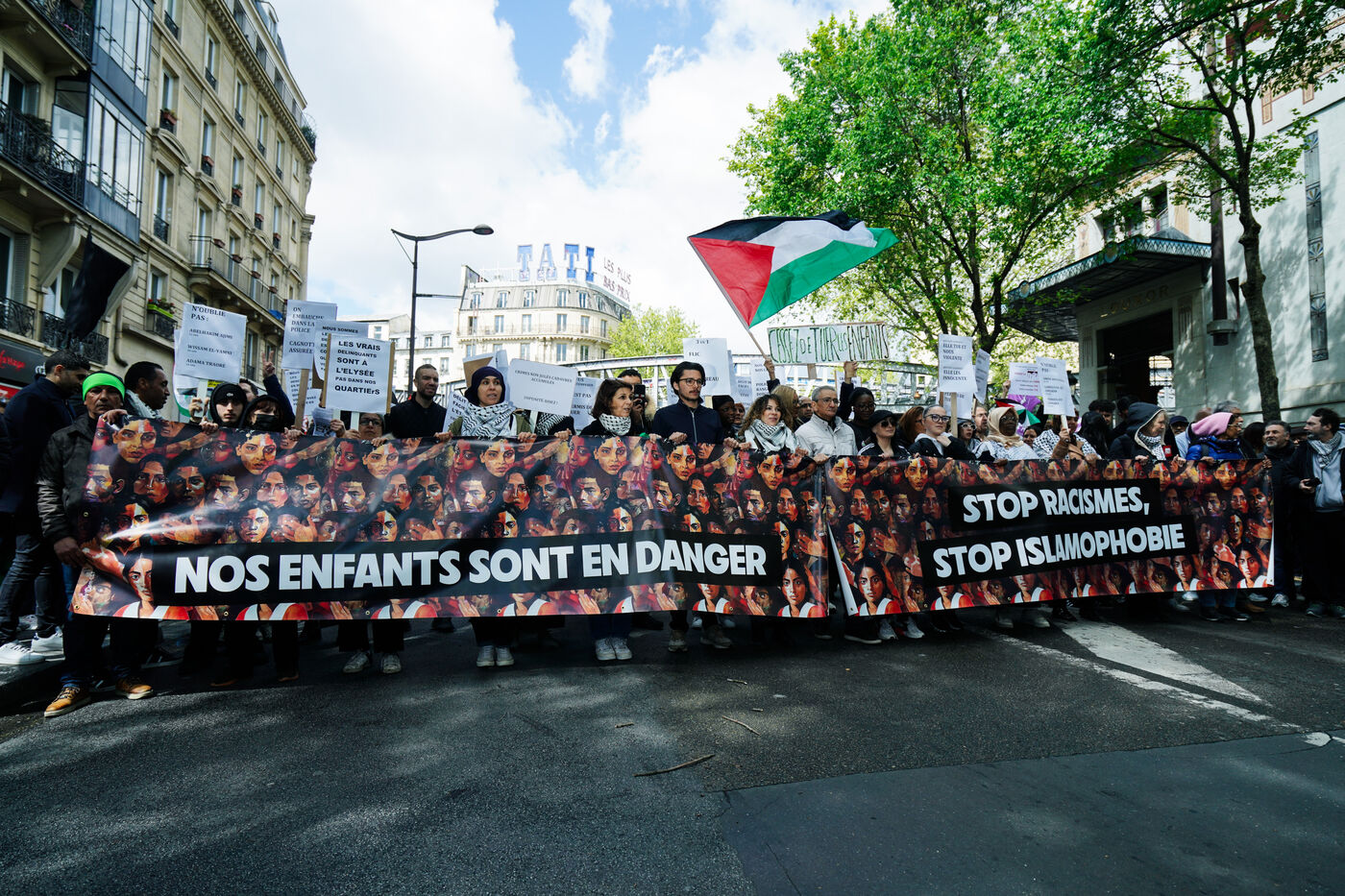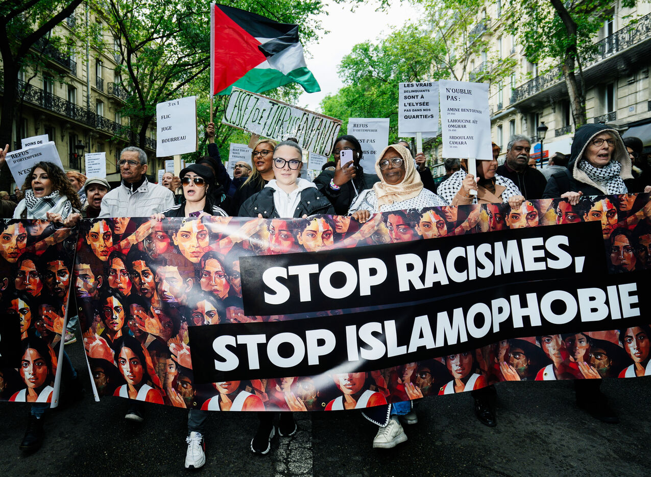 Demonstration against Islamophobia, racism and for the protection of children against police crimes in Paris, France on April 21st, 2024.