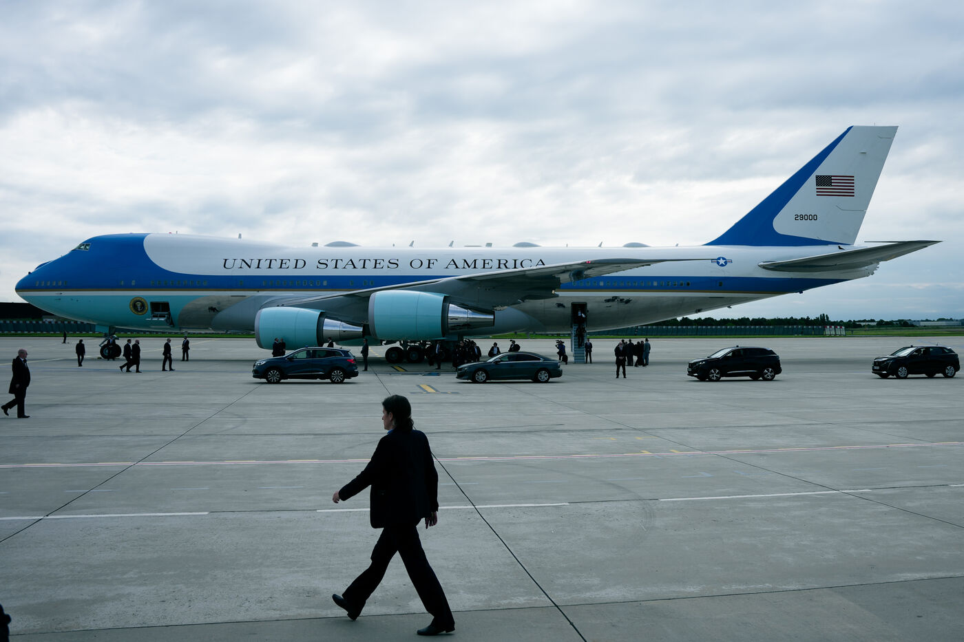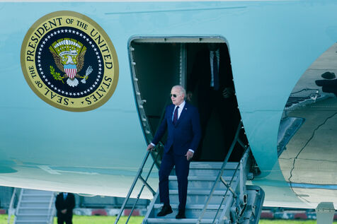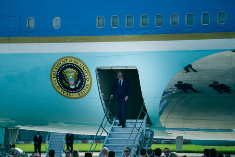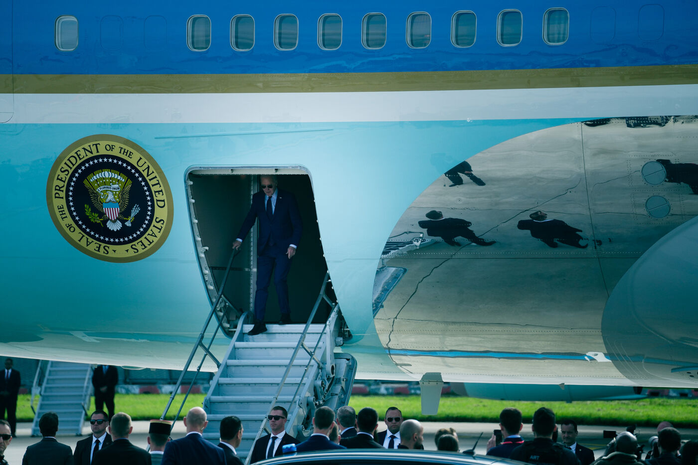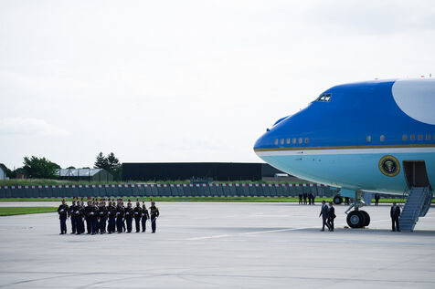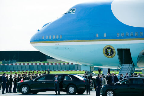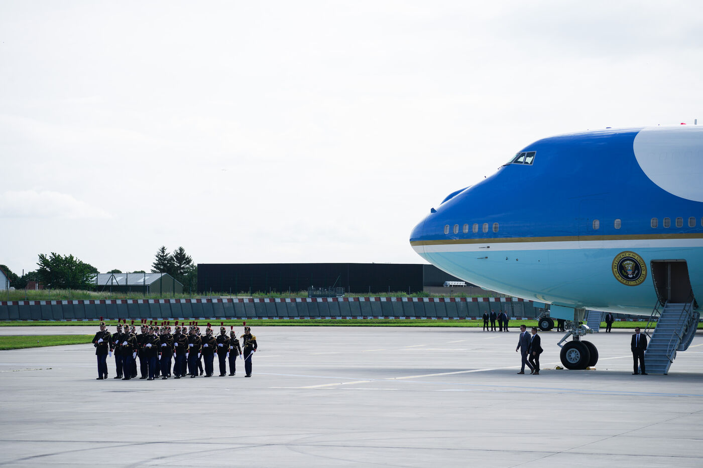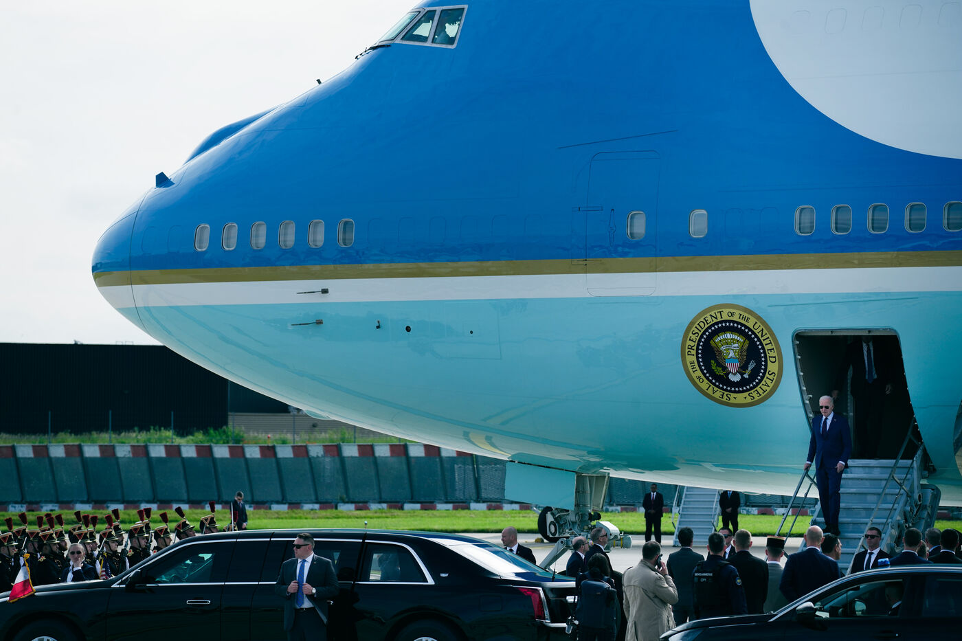 Reception of Joe BIDEN, President of the United States of America, by Prime Minister Gabriel ATTAL at the Honorary Pavilion of the Paris Orly airport in Orly, France, on June 5th, 2024.