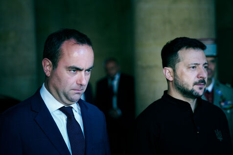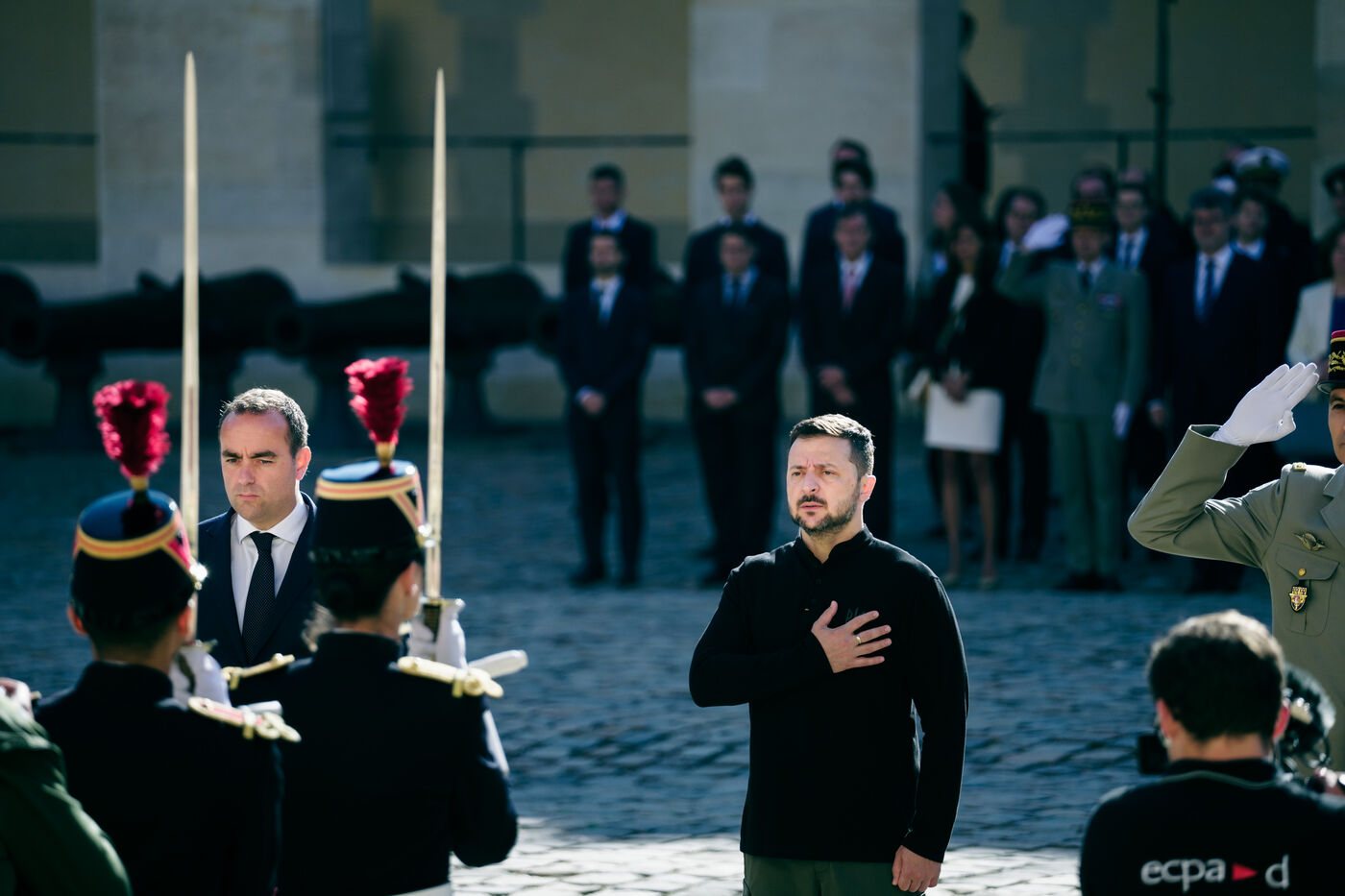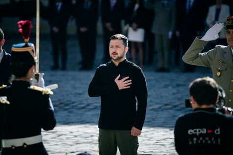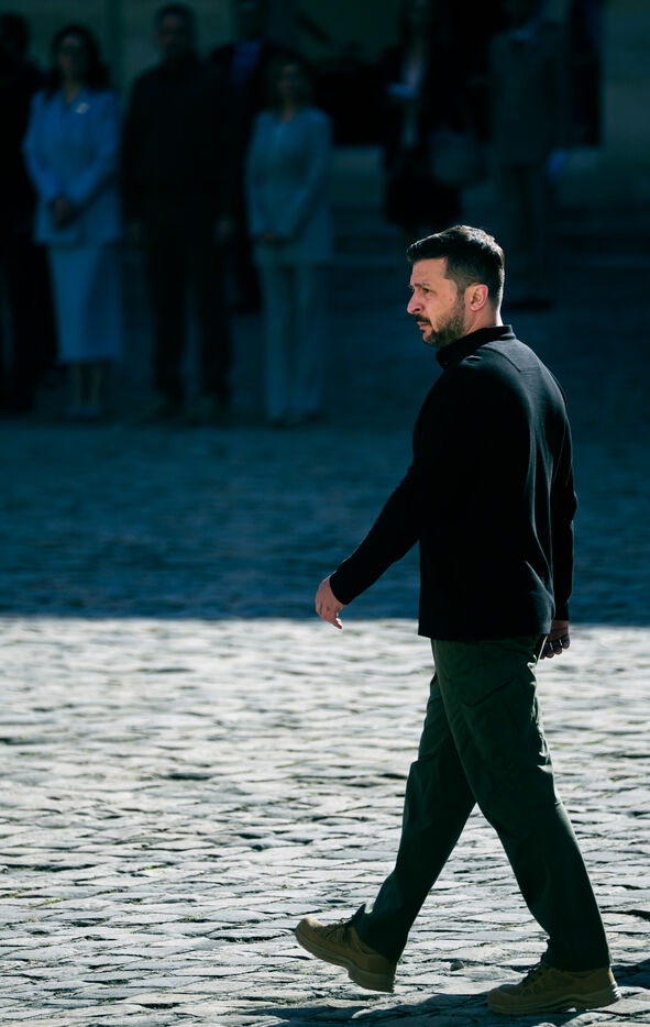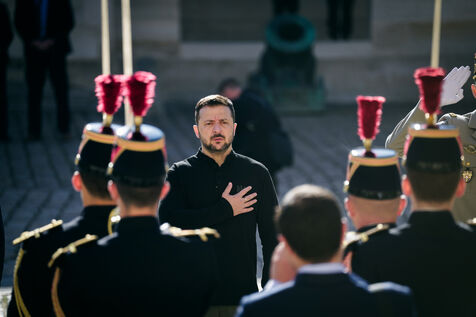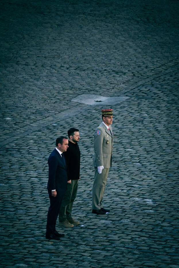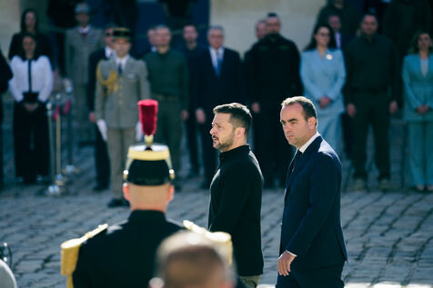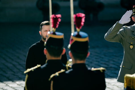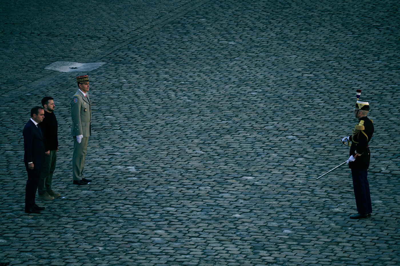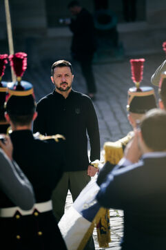 Military honor ceremony to Volodymyr Zelensky, President of Ukraine by Sebastien Lecornu, Minister of the Armed Forces at the Hotel des Invalides in Paris, France, June 7, 2024.