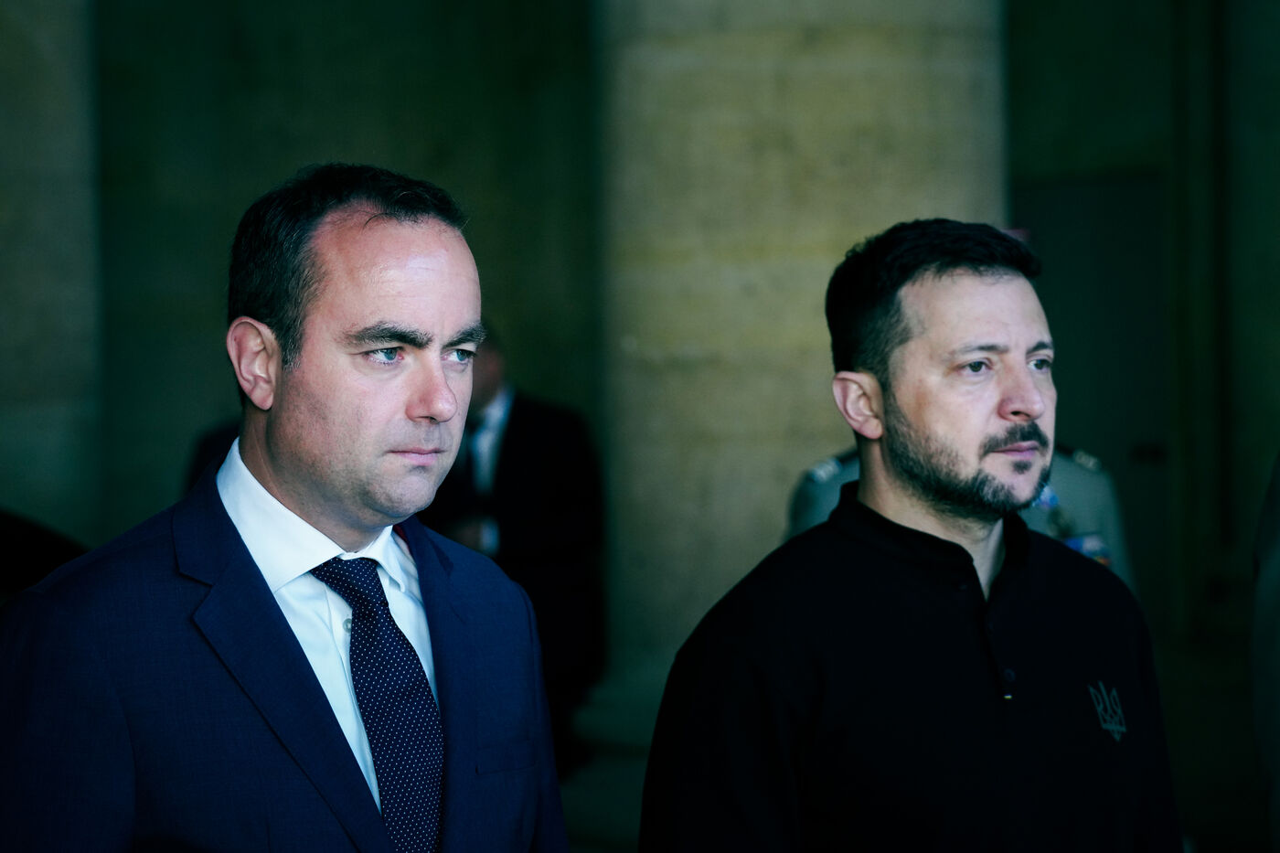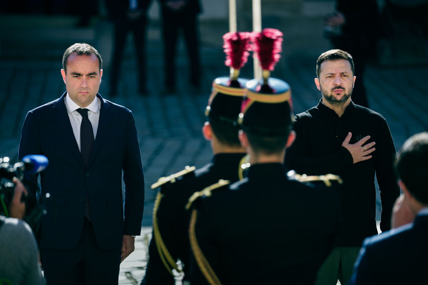 Ceremonie d honneur militaires a Volodymyr Zelensky, President de l Ukraine par Sebastien Lecornu, ministre des Armees a l Hotel des Invalides a Paris, France, le 7 juin, 2024.