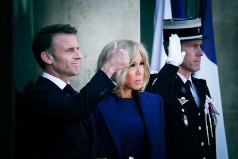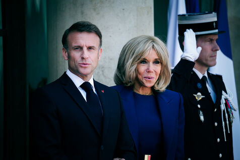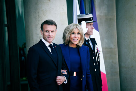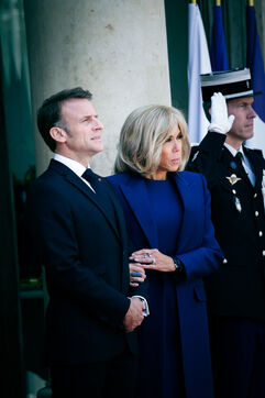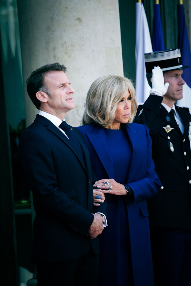 The president of France, Emmanuel Macron and his wife, Brigitte Macron receive Joe BIDEN, President of the United States of America and his wife Jill Biden at the Elysee Palace in Paris, France on 8th June, 2024.