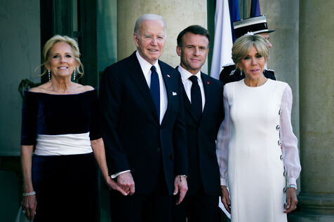 Emmanuel Macron, president de la Republique francaise et son epouse, Brigitte Macron recoivent Joe BIDEN, president des Etats Unis d Amerique et son epouse, Jill Biden au Palais de l Elysee a Paris, France, le 8 juin, 2024.