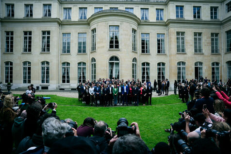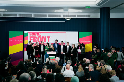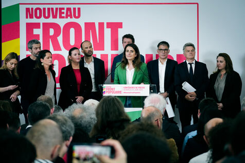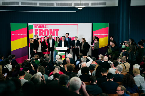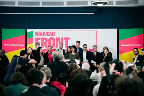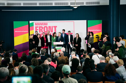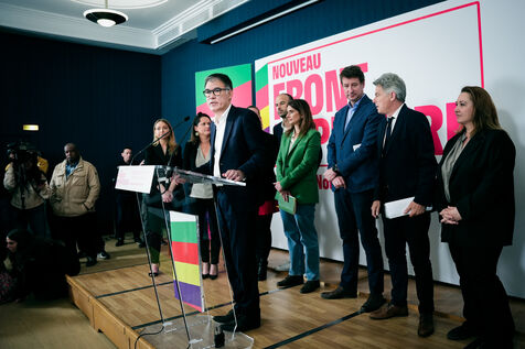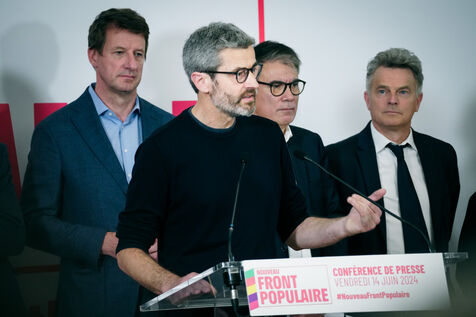 Conference de presse annoncant le nouveau front populaire a Paris, France le 14 juin, 2024.
