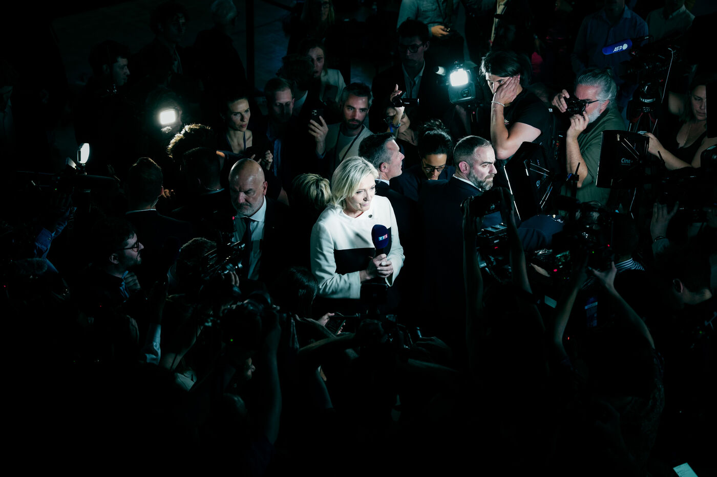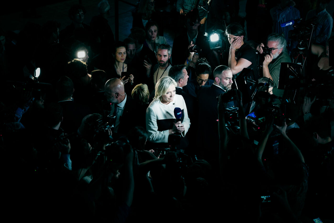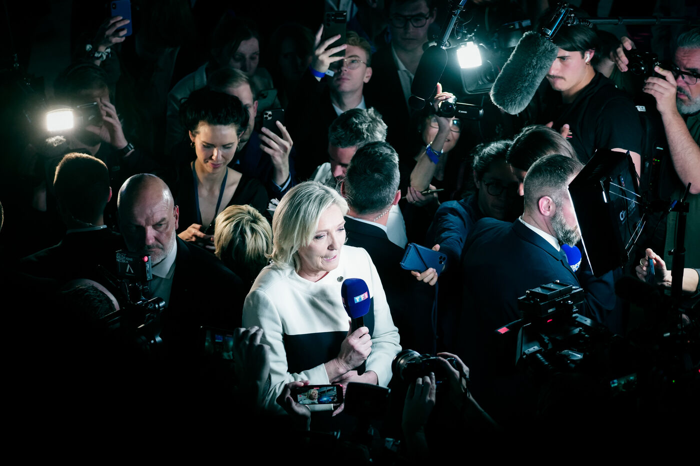 Election evening of the Rassemblement National party with Jordan Bardella and Marine Le Pen after the second and final round of France s legislative elections, in Paris, France on 7th July, 2024.