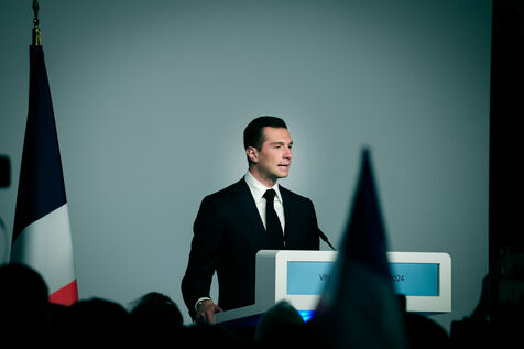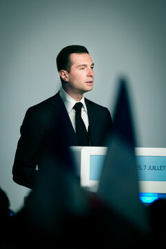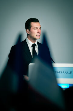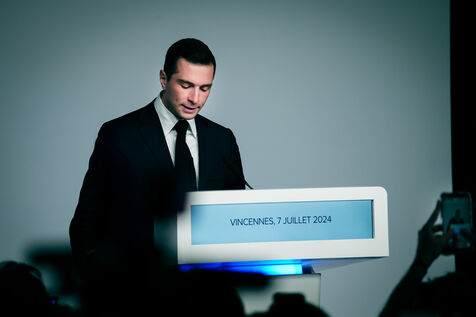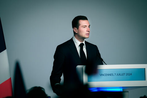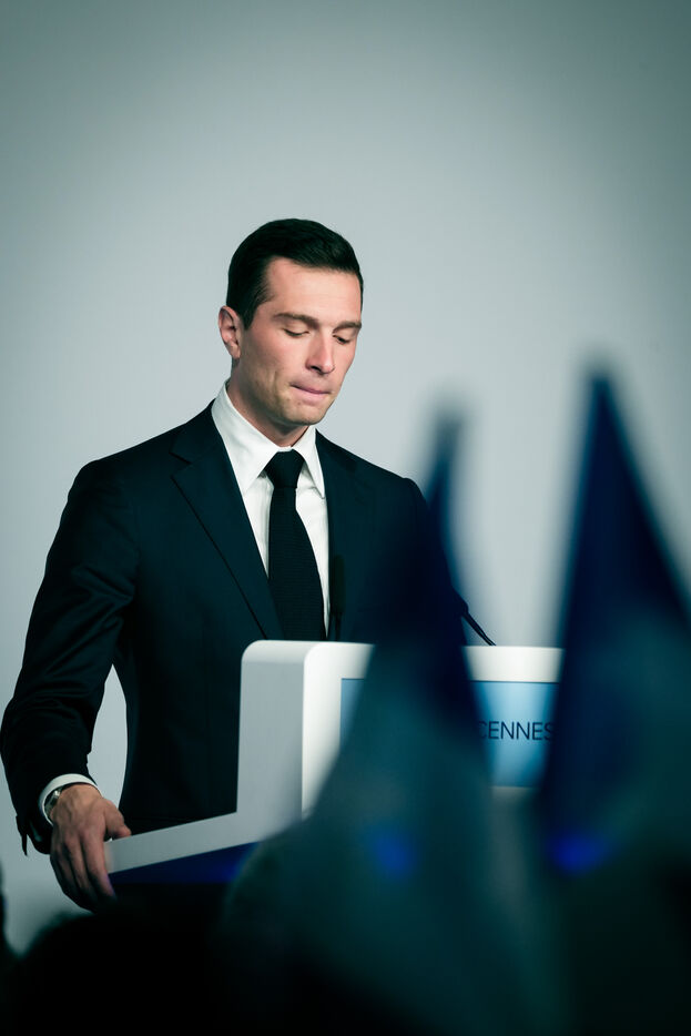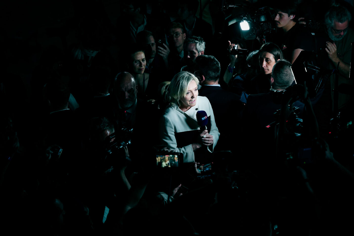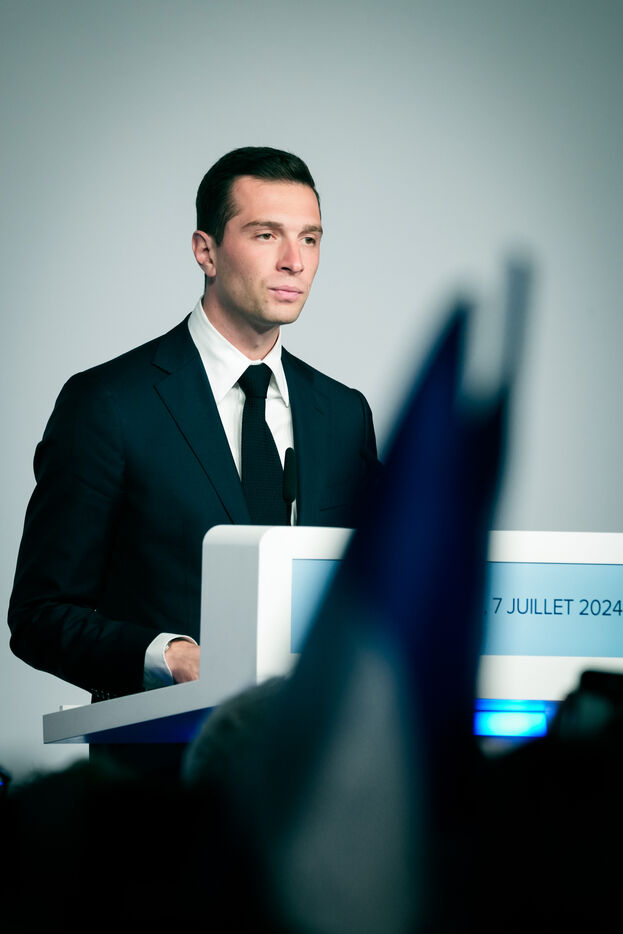 Election evening of the Rassemblement National party with Jordan Bardella and Marine Le Pen after the second and final round of France s legislative elections, in Paris, France on 7th July, 2024.