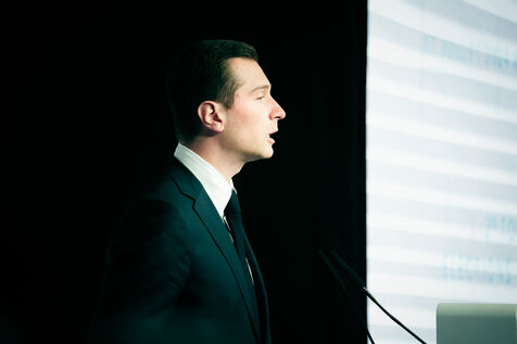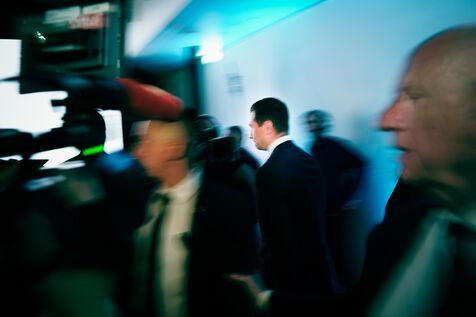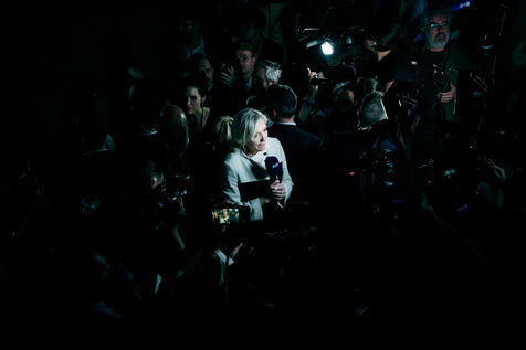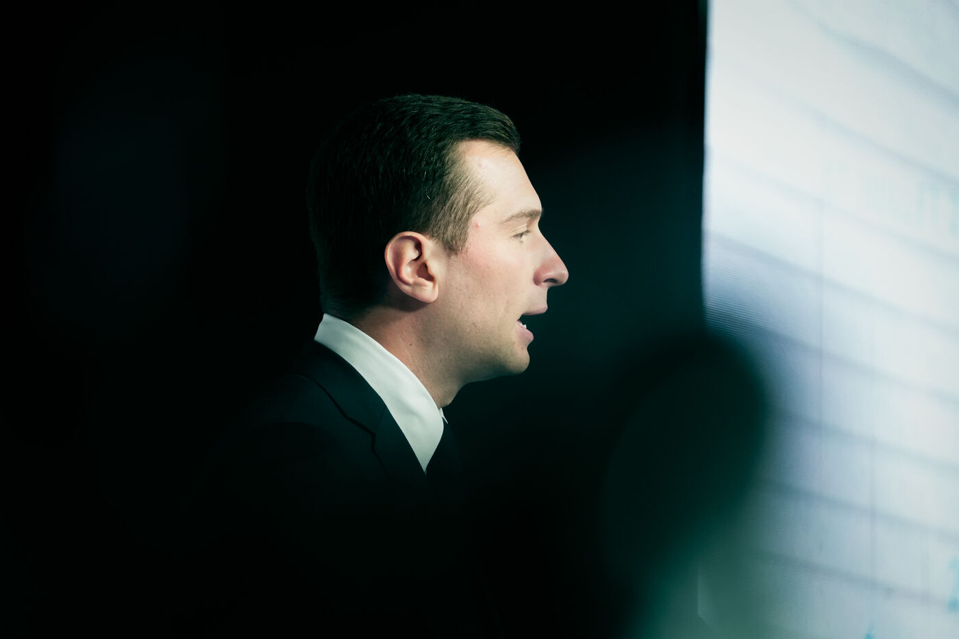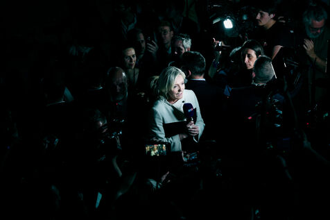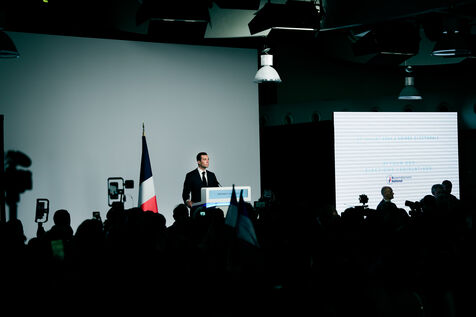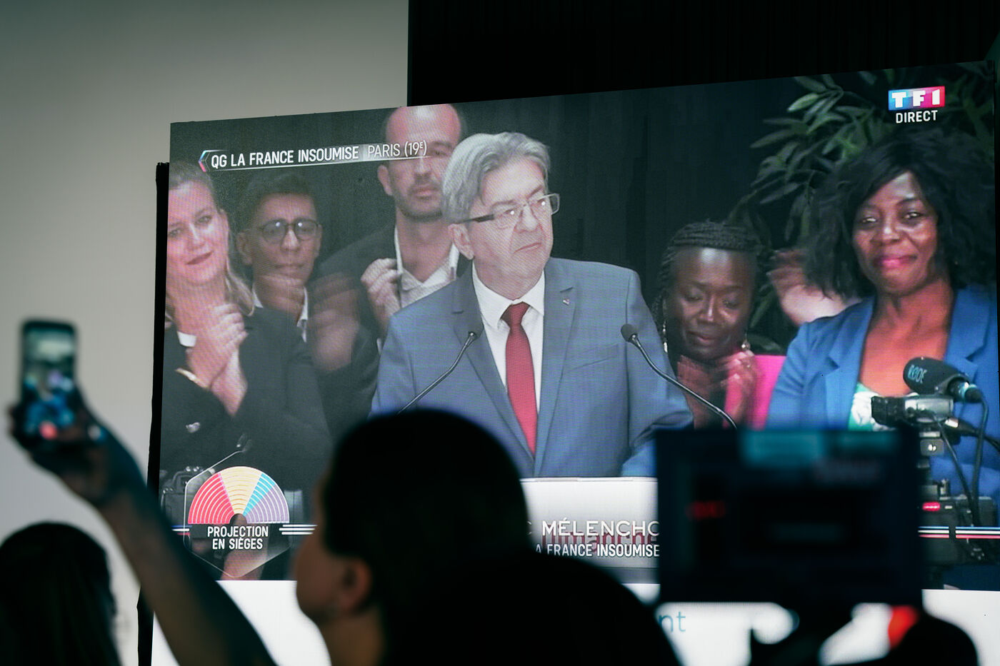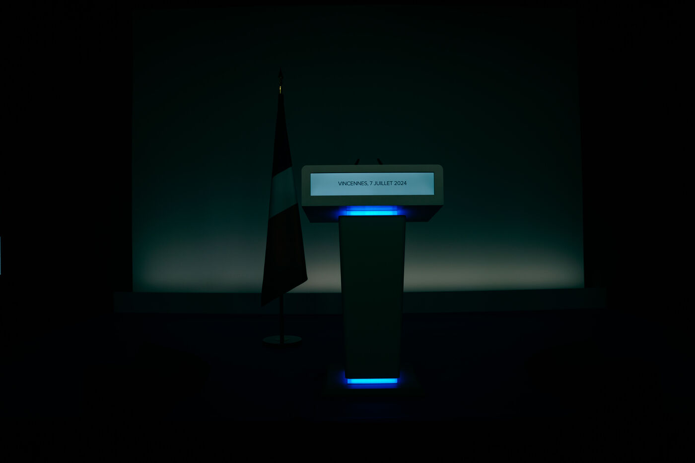 Soiree electorale du Rassemblement National avec Jordan Bardella et Marine Le Pen apres le deuxieme tour des elections legislatives, a Paris, France, le 7 juillet 2024.