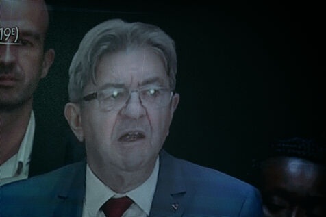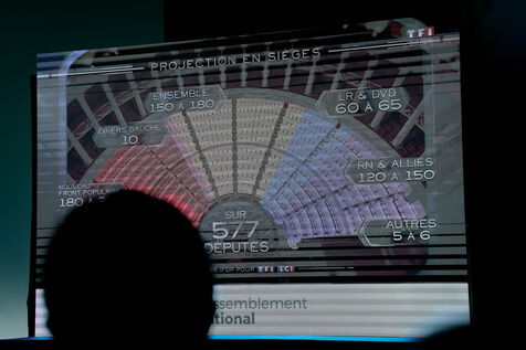Soiree electorale du Rassemblement National avec Jordan Bardella et Marine Le Pen a Paris, le 7 juillet, 2024.