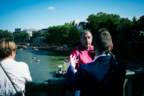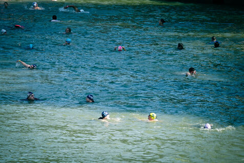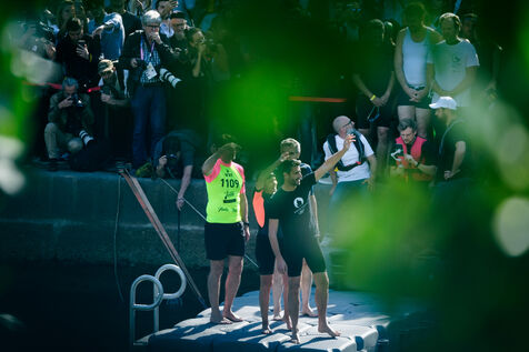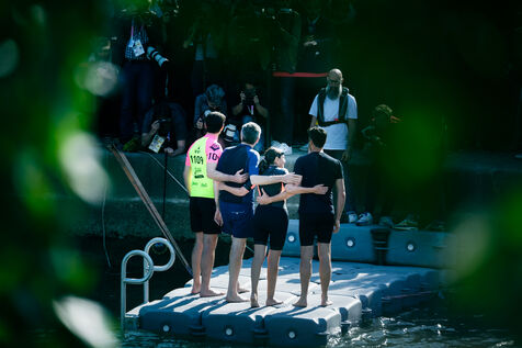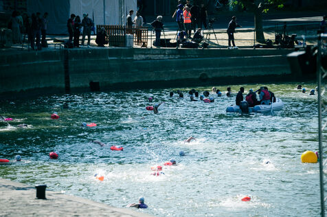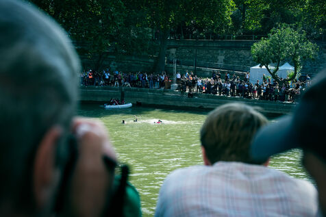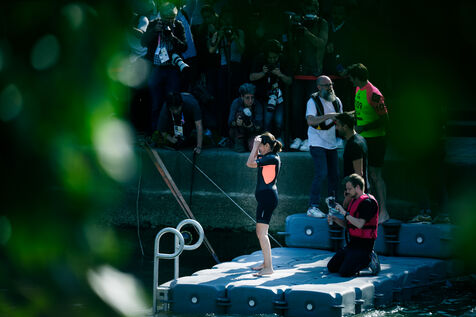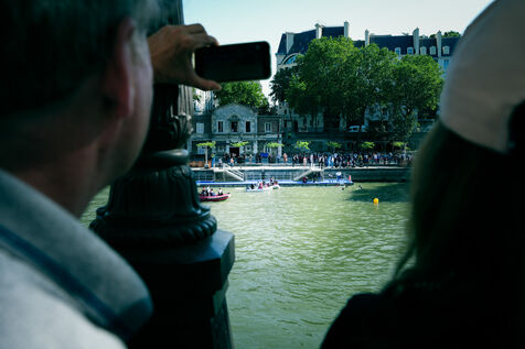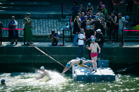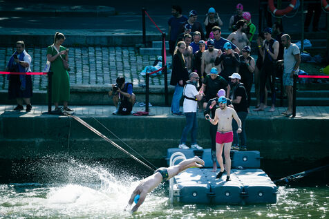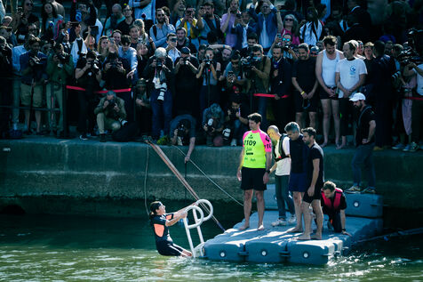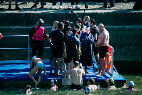 Swim in the Seine river of Anne Hidalgo, mayor of Paris and Tony Estanguet, Paris 2024 President ahead of the Paris2024 Summer Olympic Games in Paris, France on July 17, 2024.