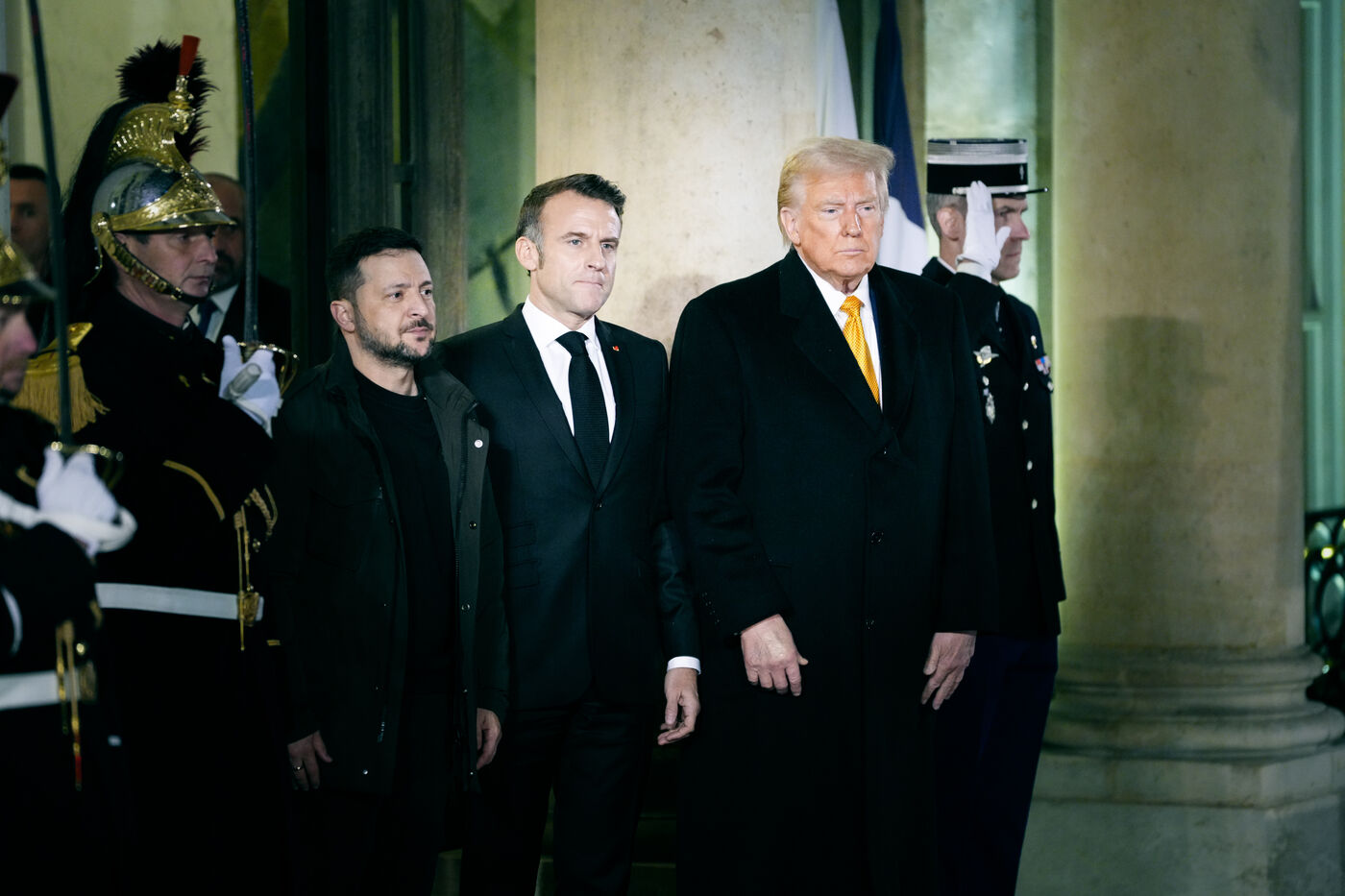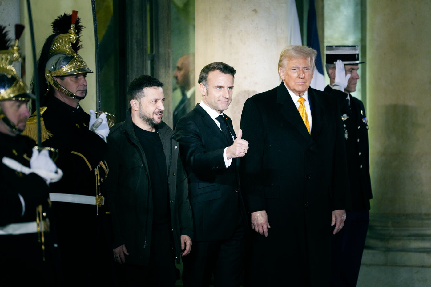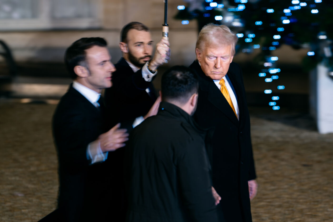 Reception of Donald Trump US president elect and Volodymyr Zelensky president of Ukraine at the Elysee Palace in Paris, France on 7 December, 2024.