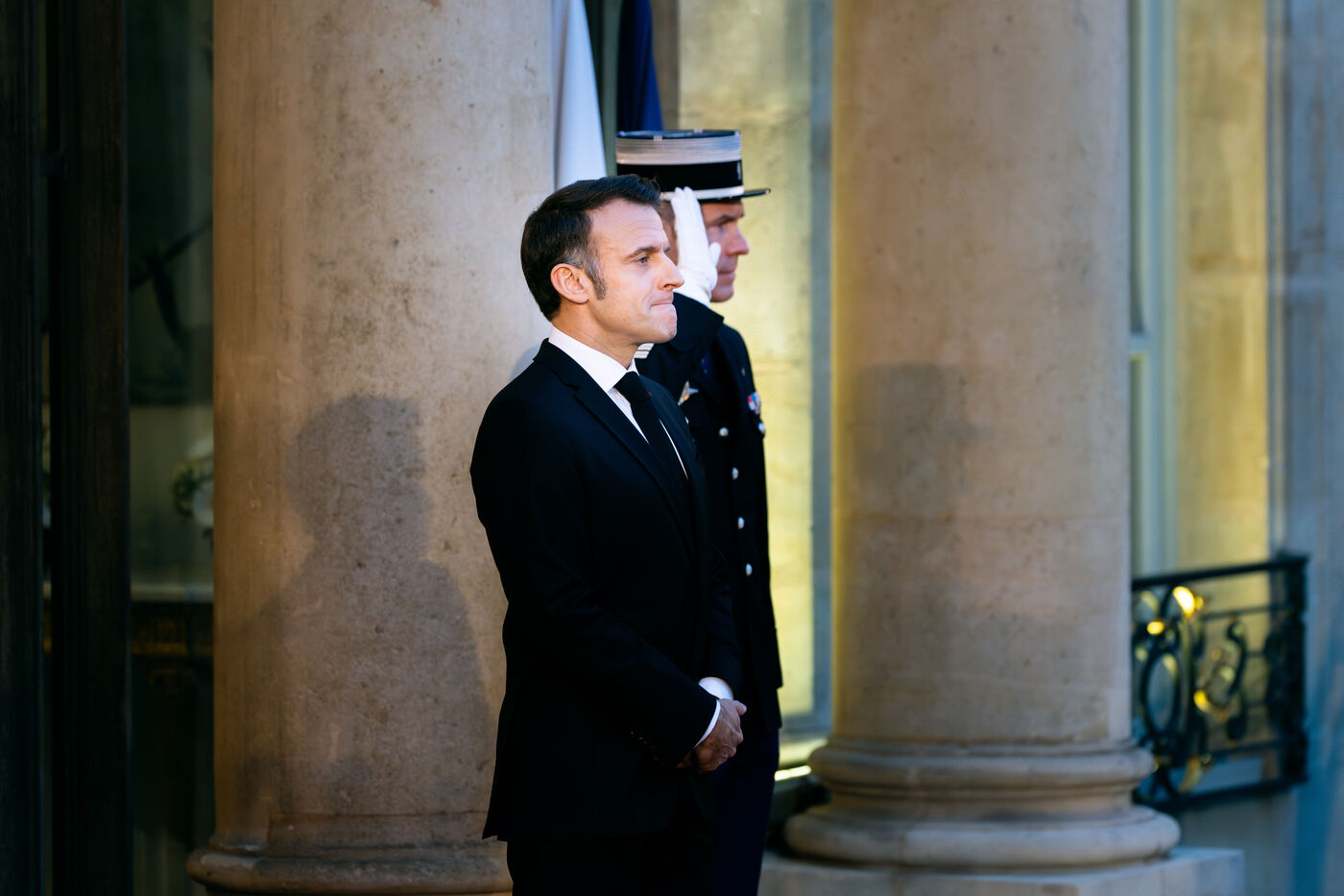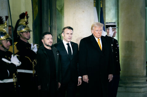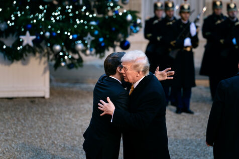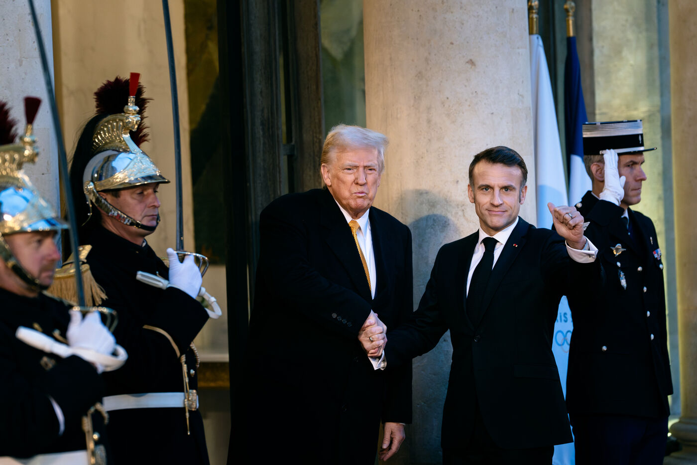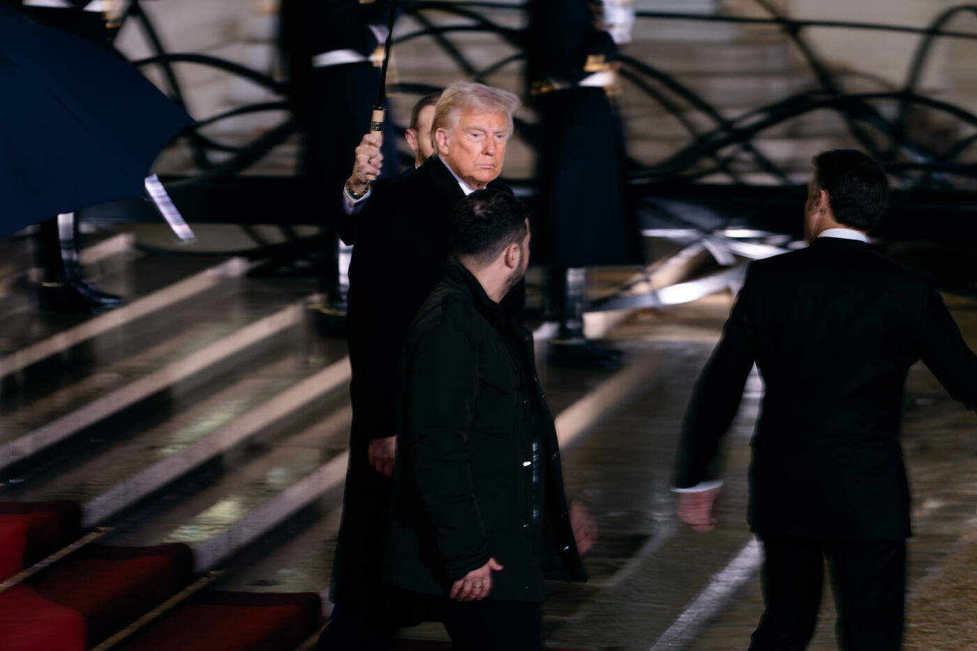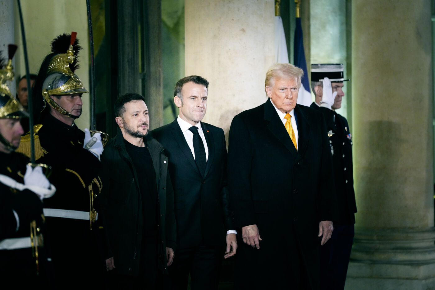 Reception of Donald Trump US president elect and Volodymyr Zelensky president of Ukraine at the Elysee Palace in Paris, France on 7 December, 2024.