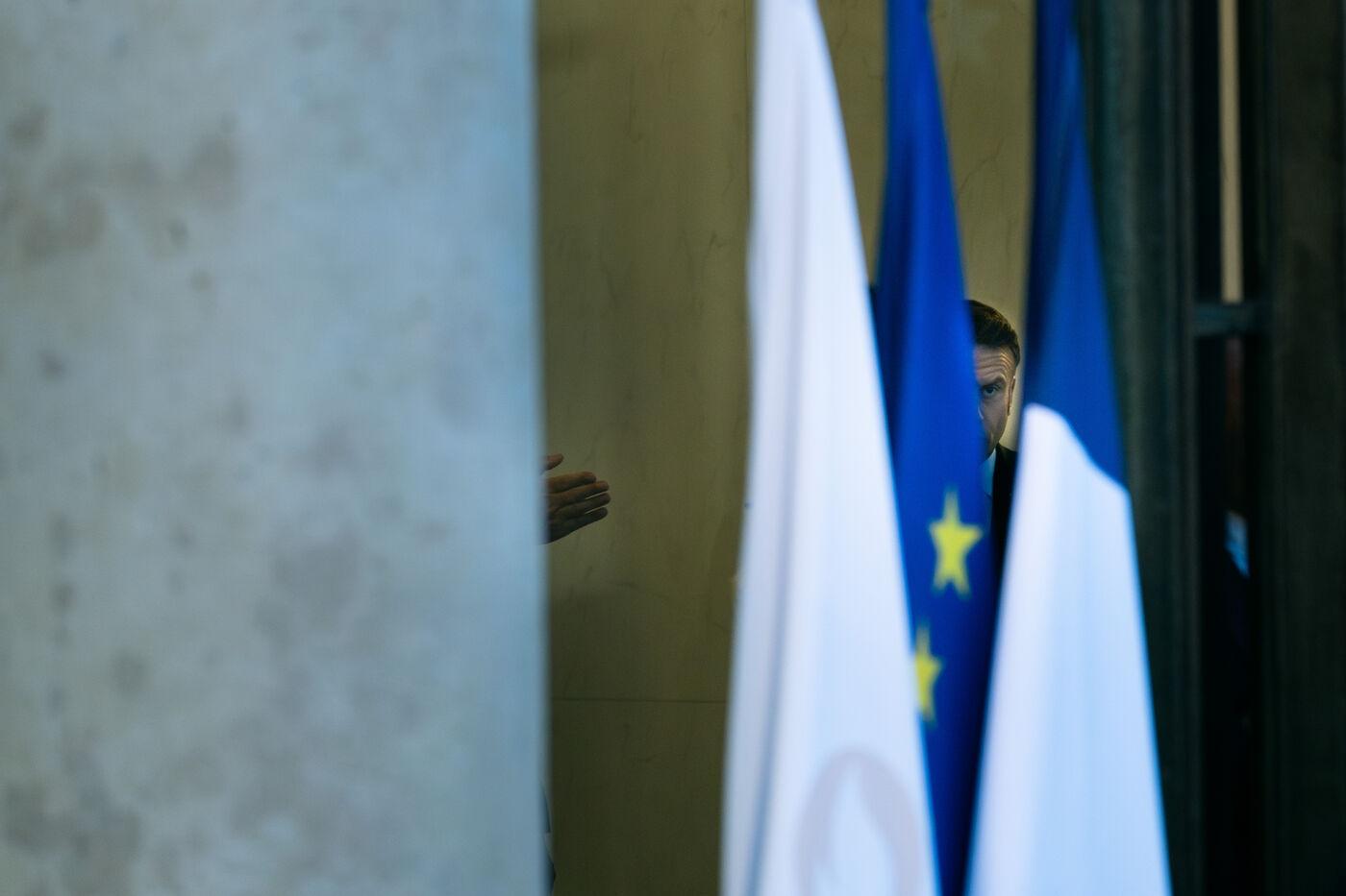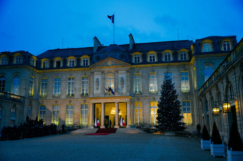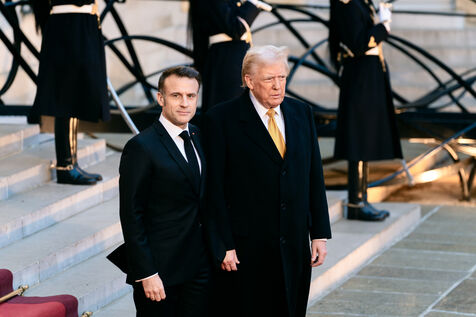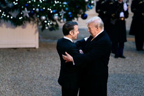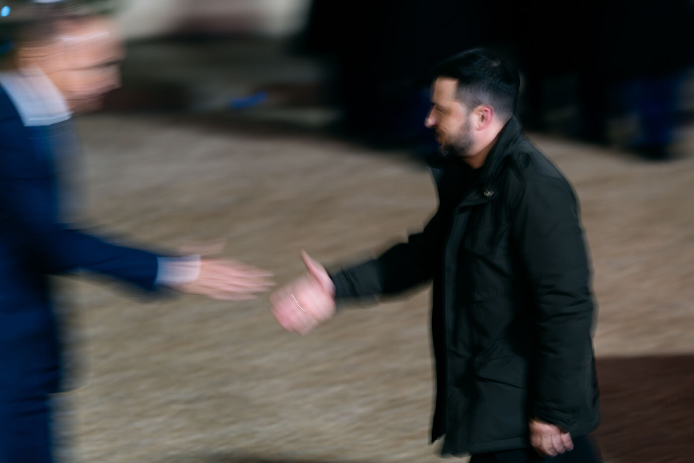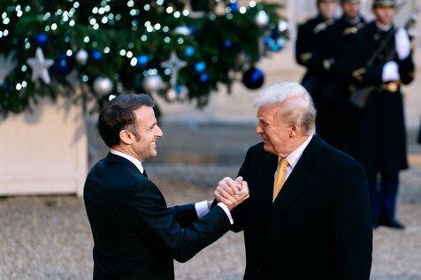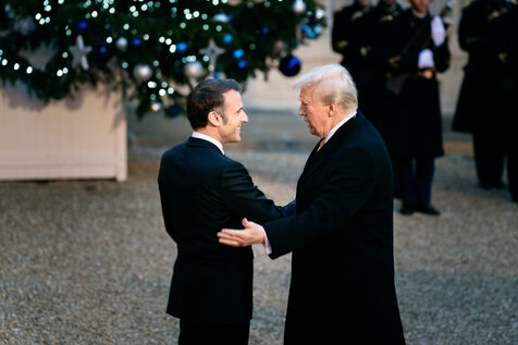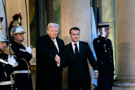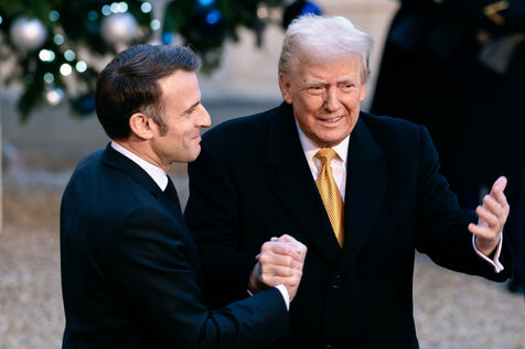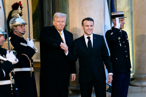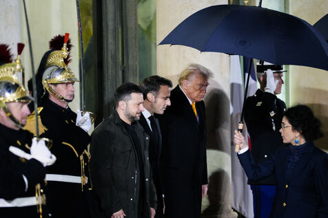 Reception of Donald Trump US president elect and Volodymyr Zelensky president of Ukraine at the Elysee Palace in Paris, France on 7 December, 2024.