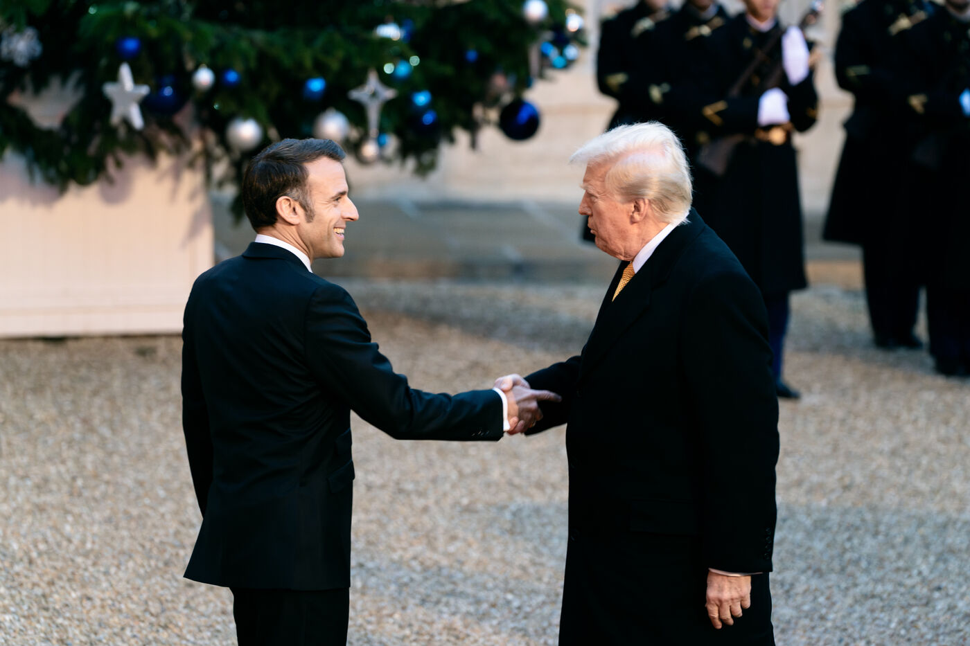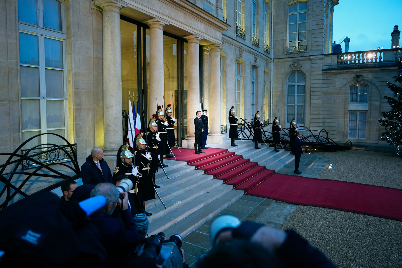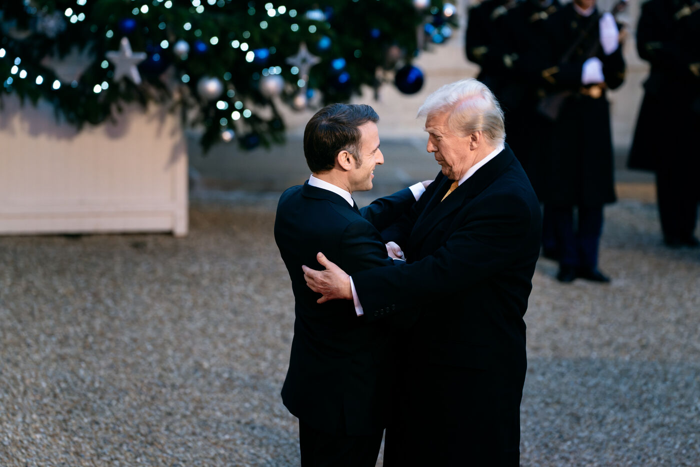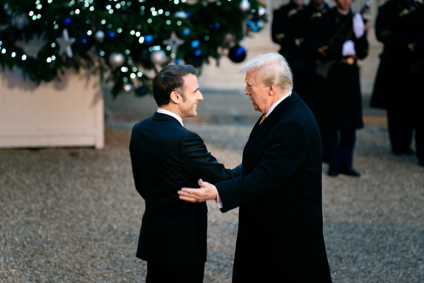 Reception officielle de Donald Trump, president elu des Etats Unis et Volodymyr Zelensky president de l Ukraine au Palais de l Elysee a Paris, en France, le 7 decembre 2024.