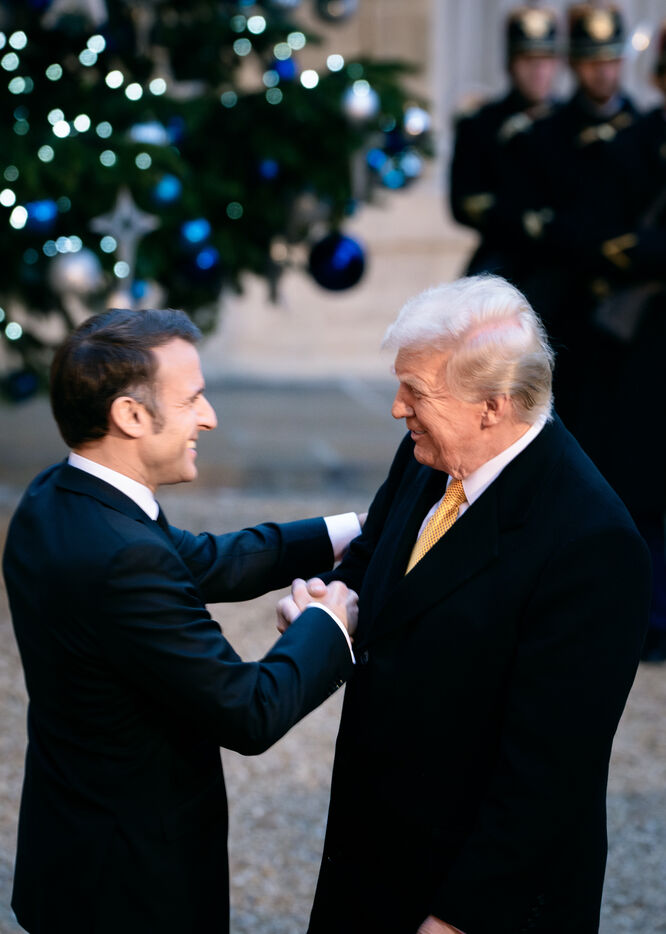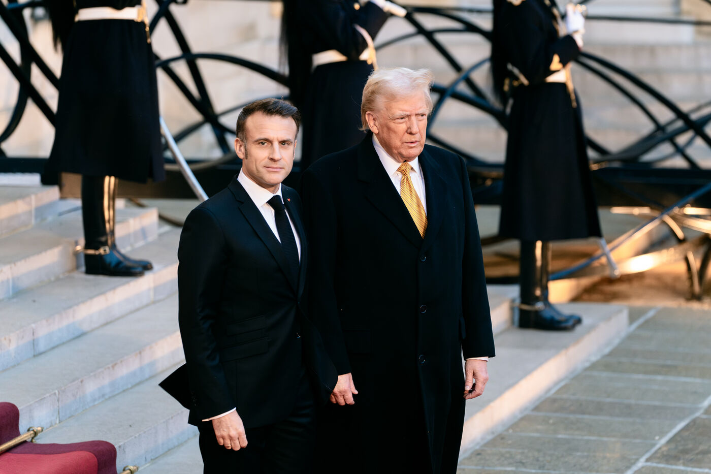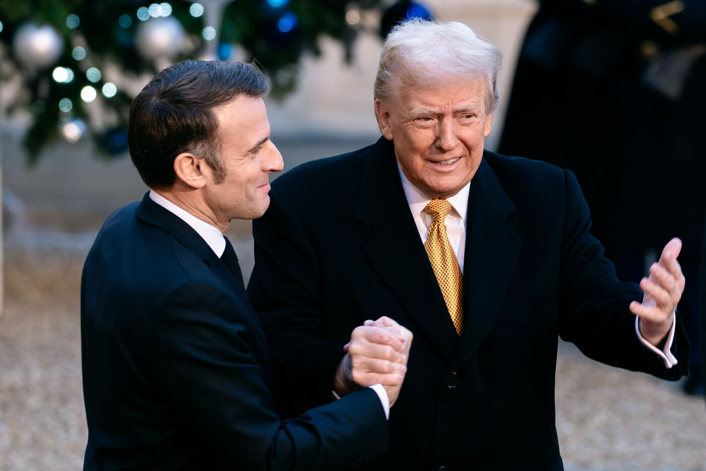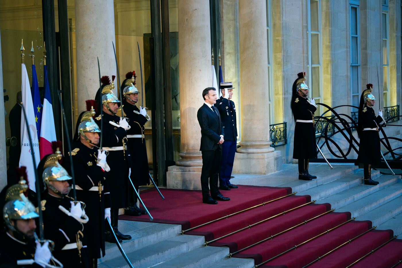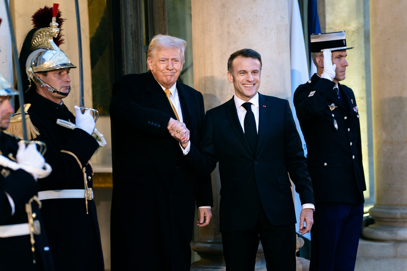 Reception officielle de Donald Trump, president elu des Etats Unis et Volodymyr Zelensky president de l Ukraine au Palais de l Elysee a Paris, en France, le 7 decembre 2024.