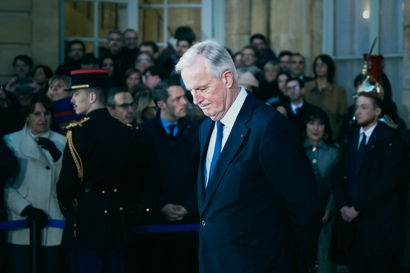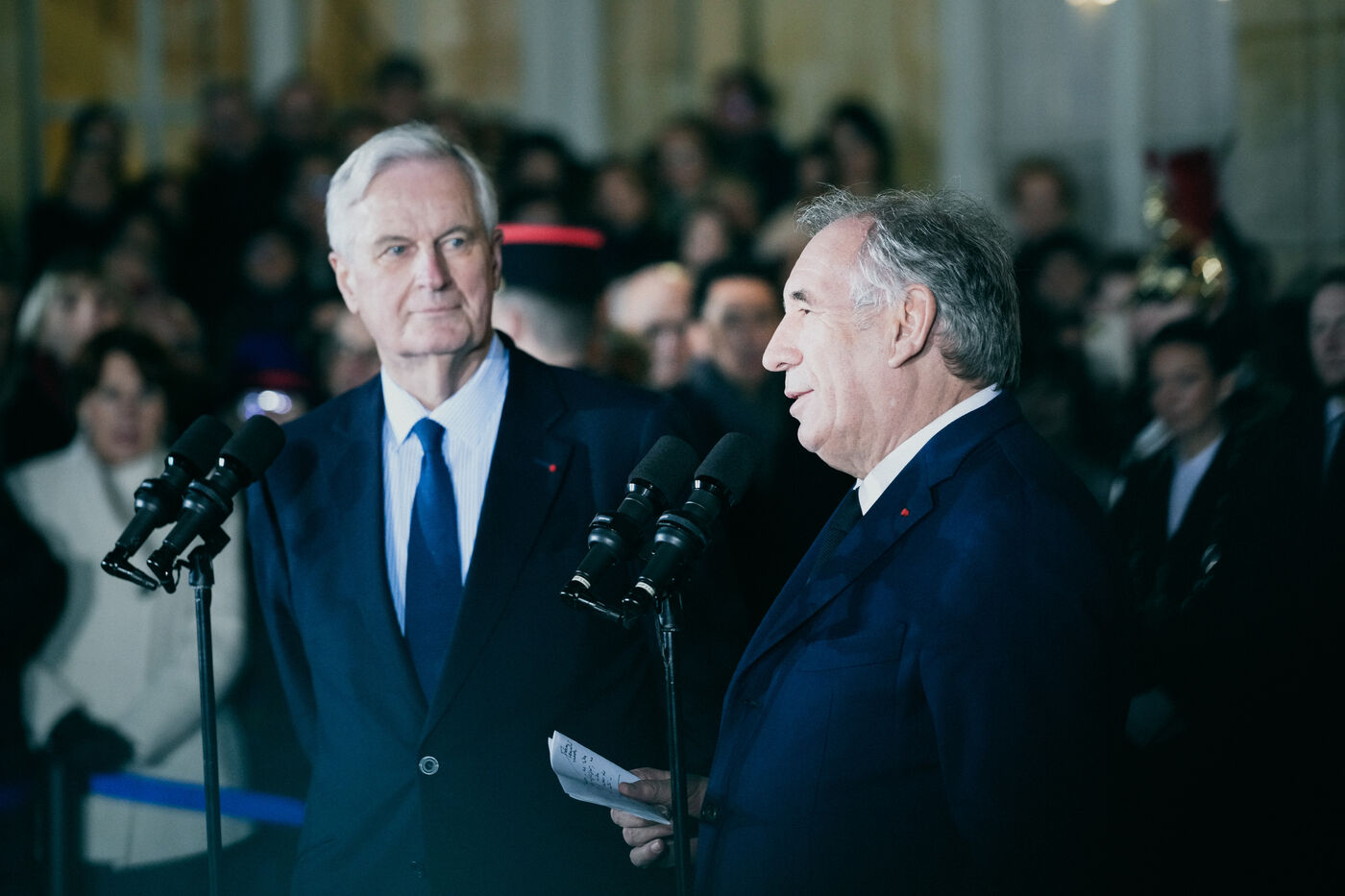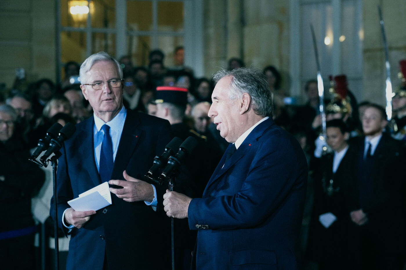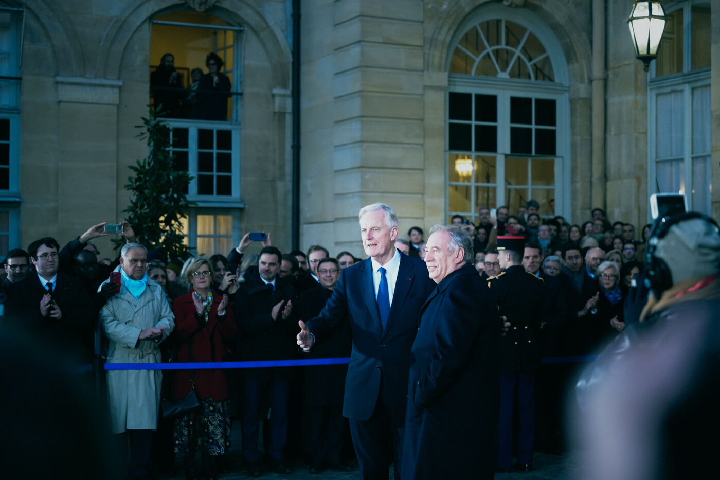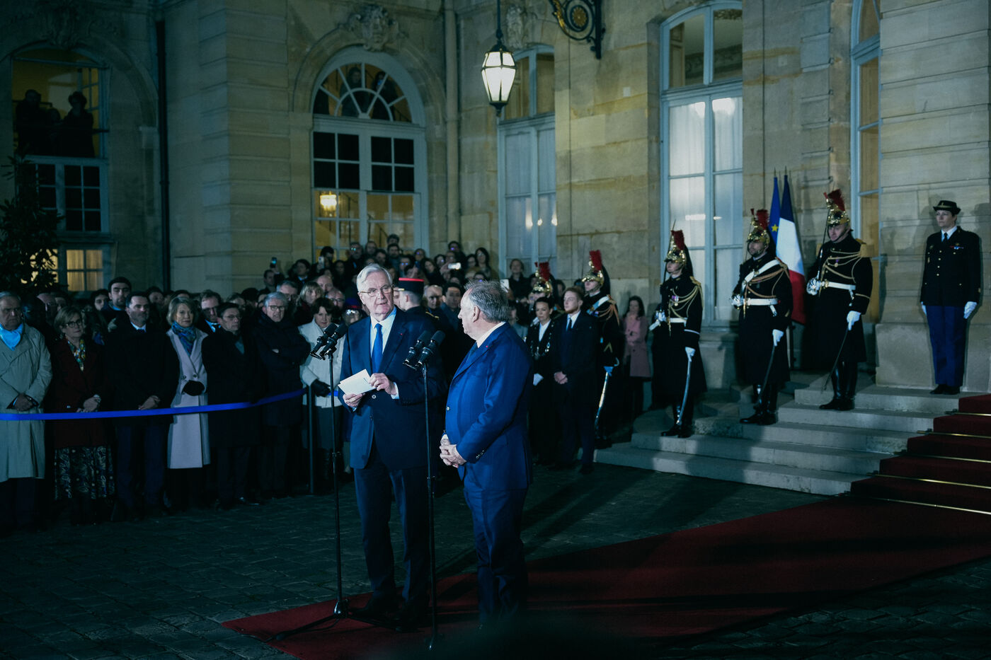 Handover of power between Michel Barnier former prime minister and Francois Bayrou prime minister at the Matignon Hotel in Paris France on December 13 2024.
