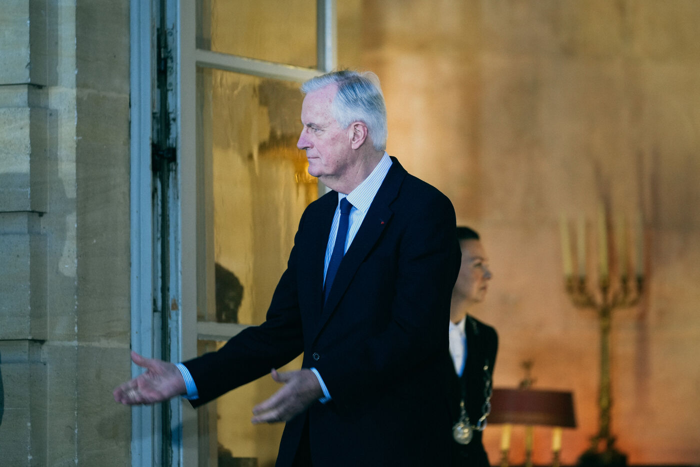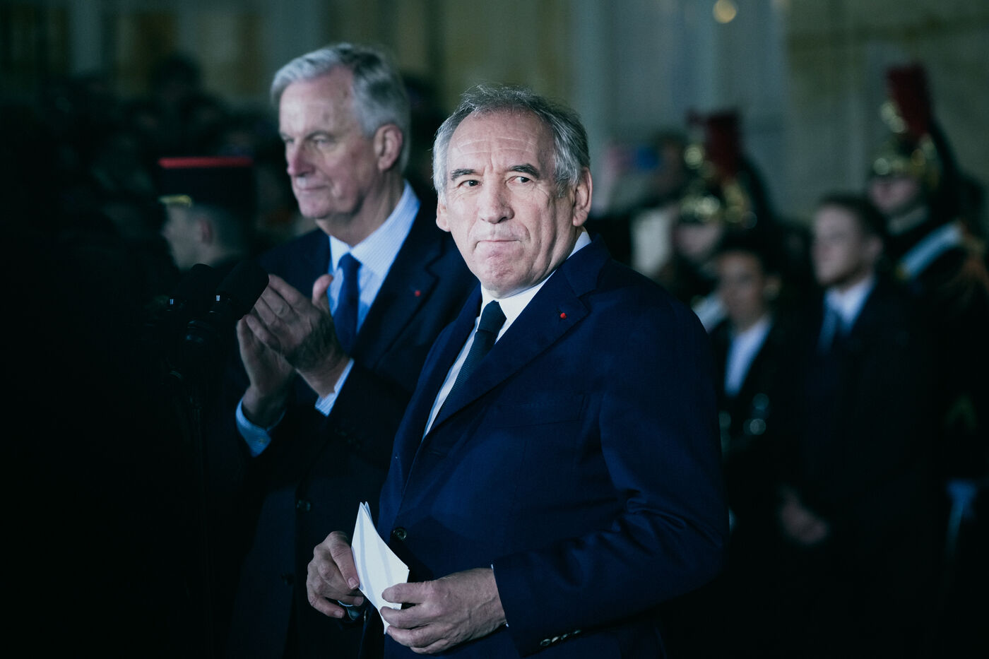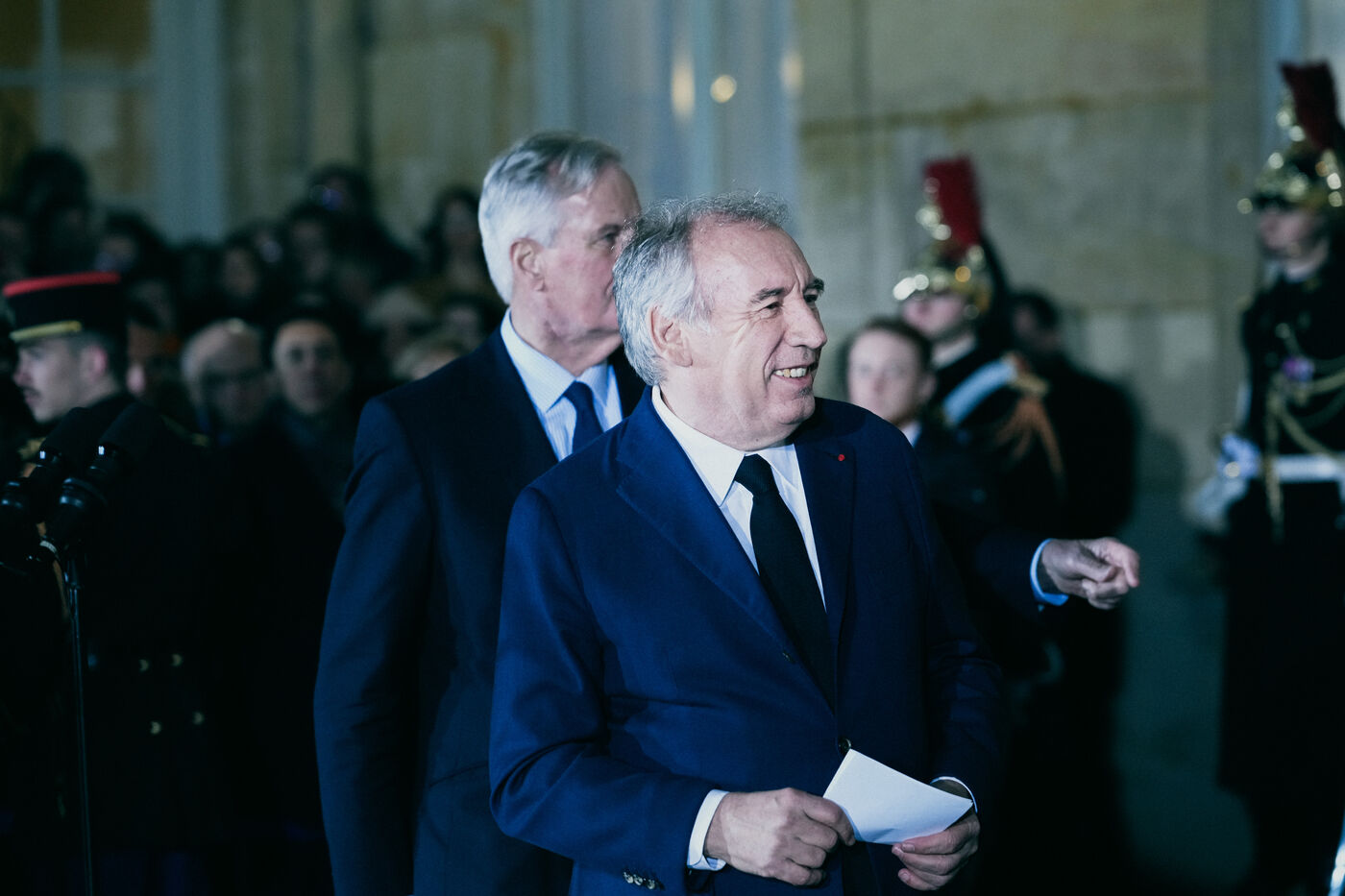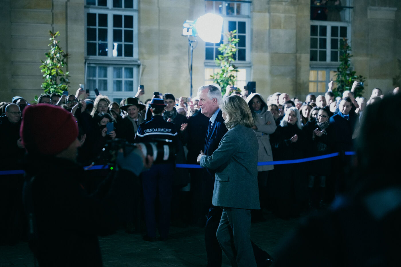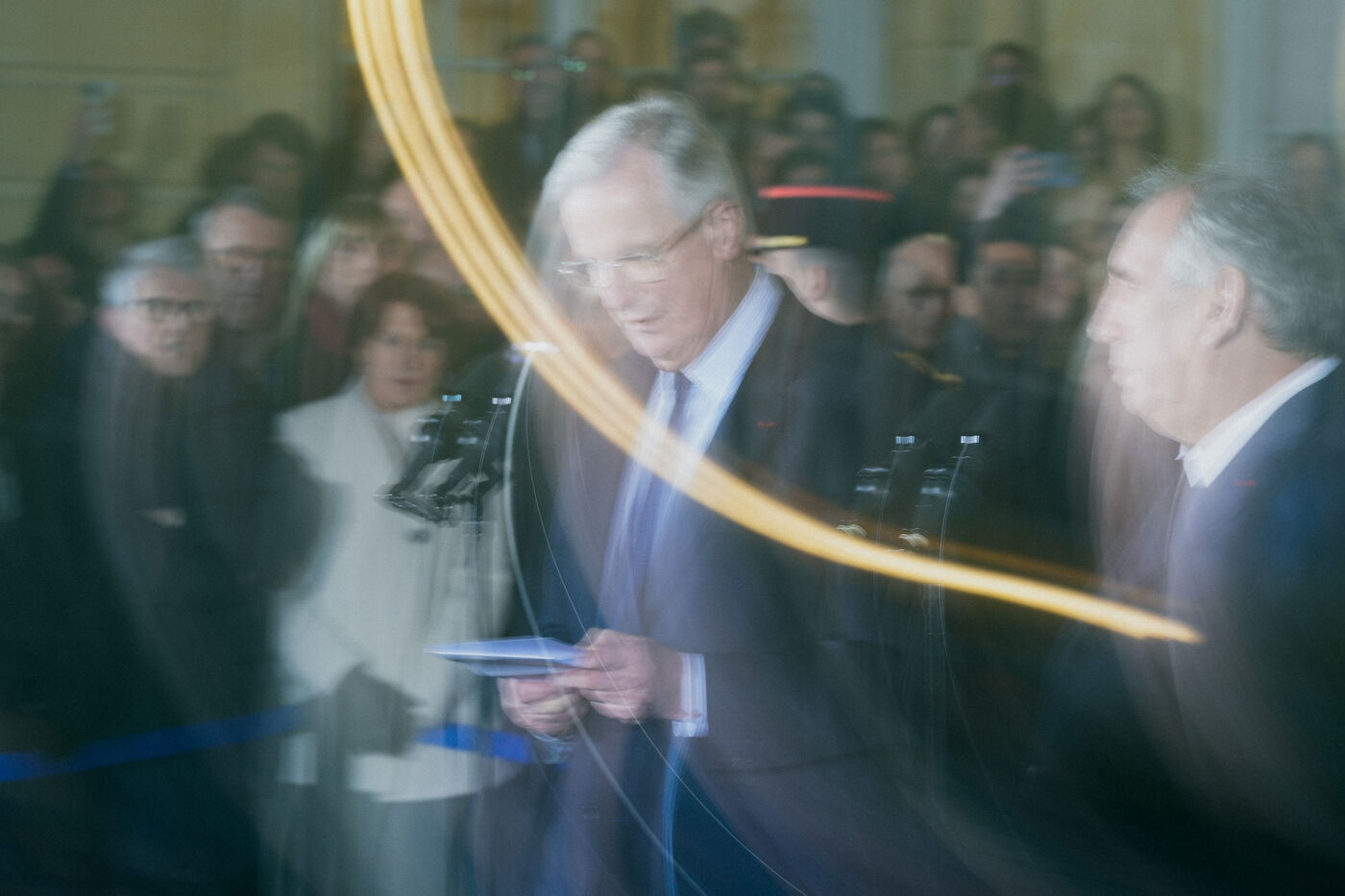 Handover of power between Michel Barnier former prime minister and Francois Bayrou prime minister at the Matignon Hotel in Paris France on December 13 2024.