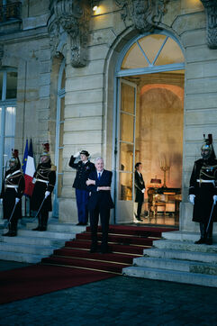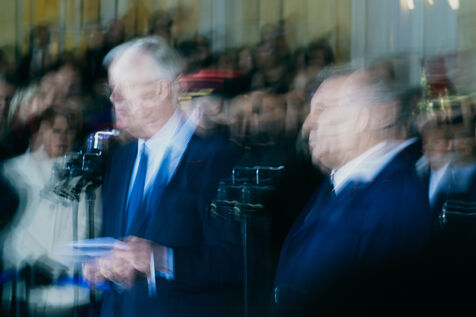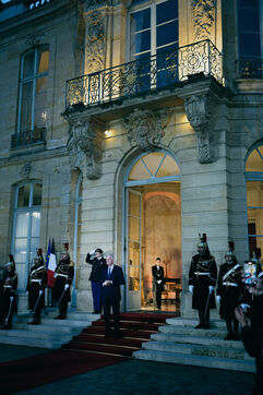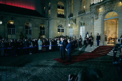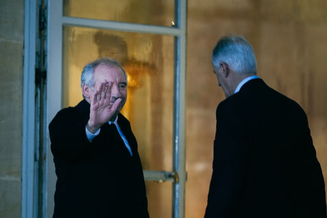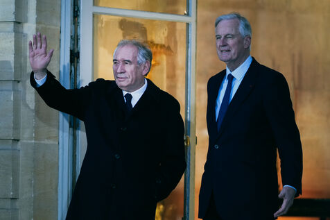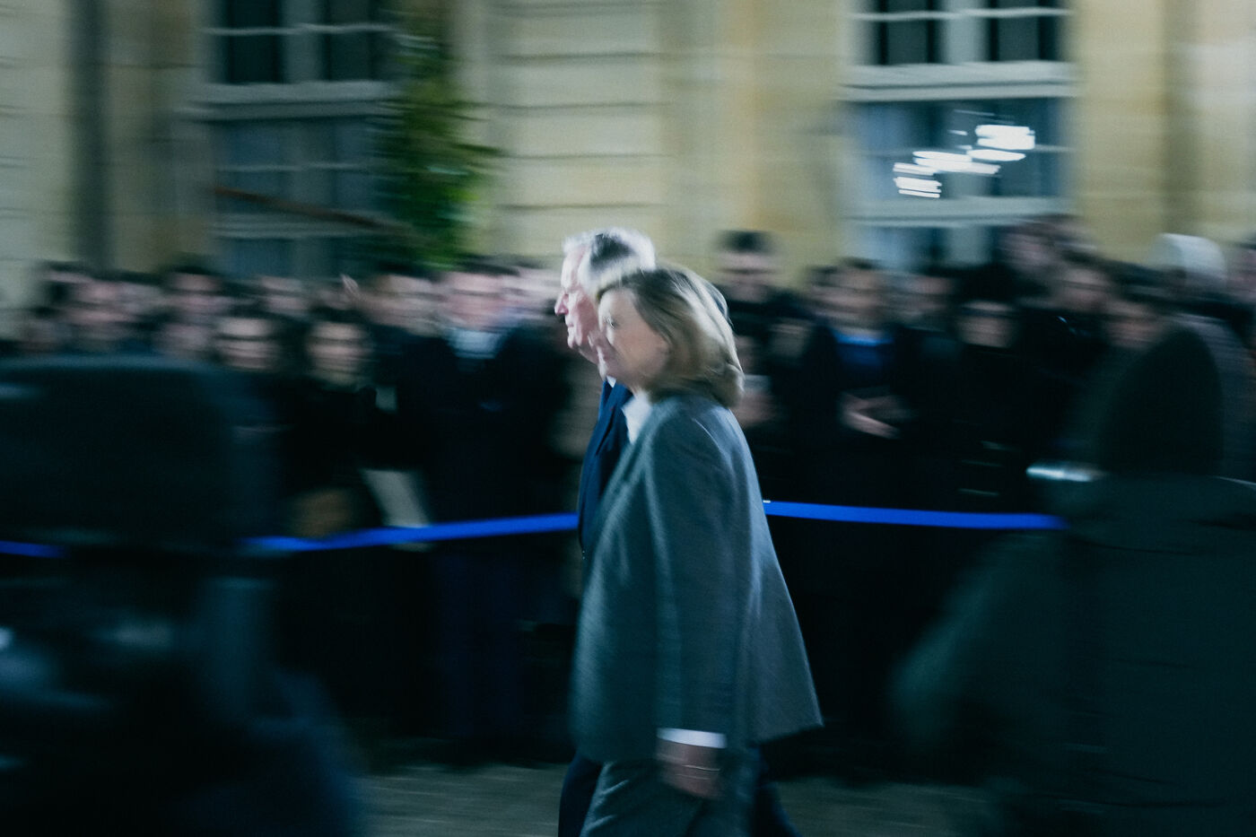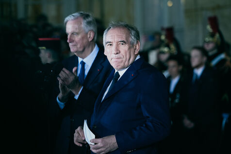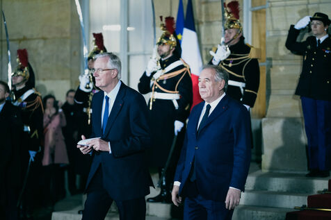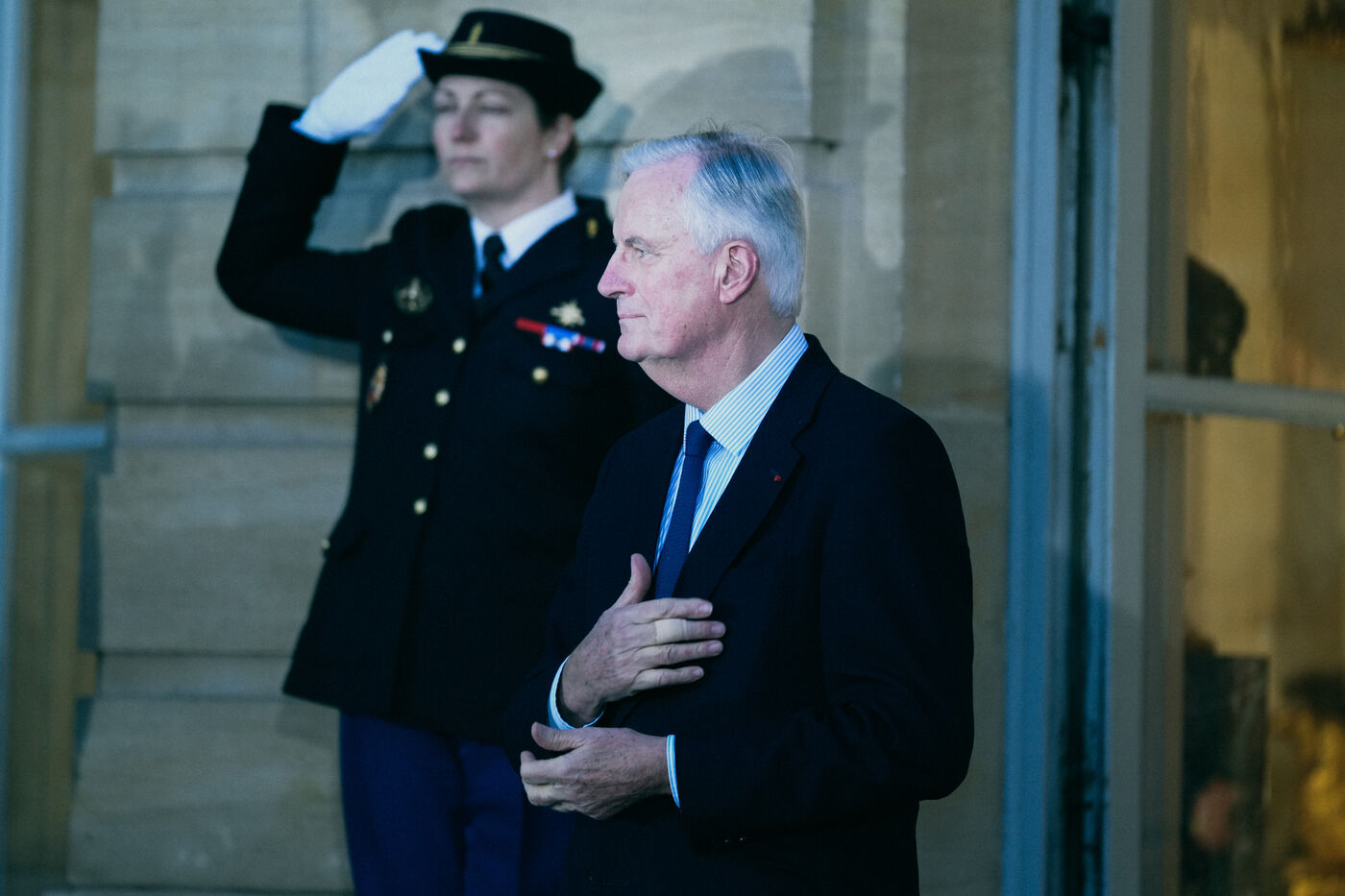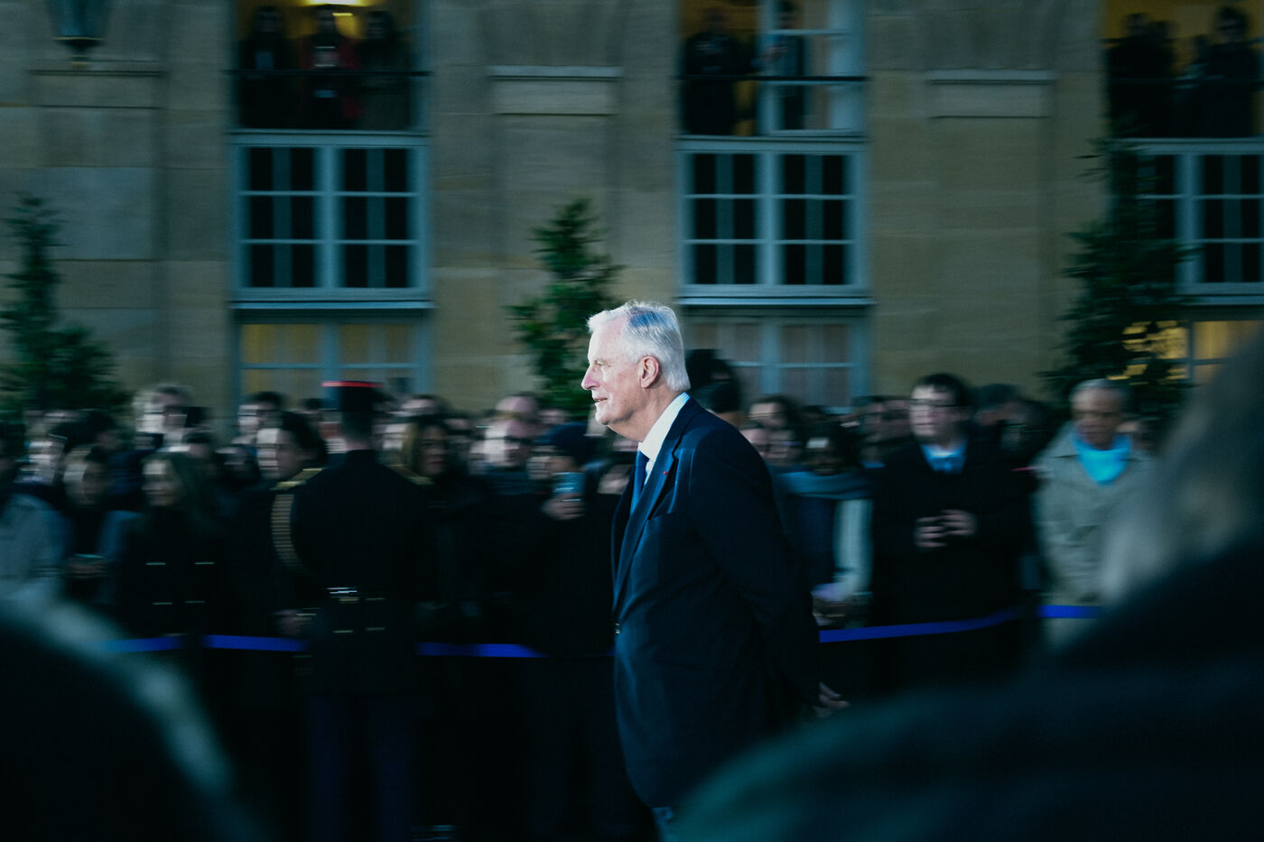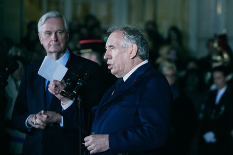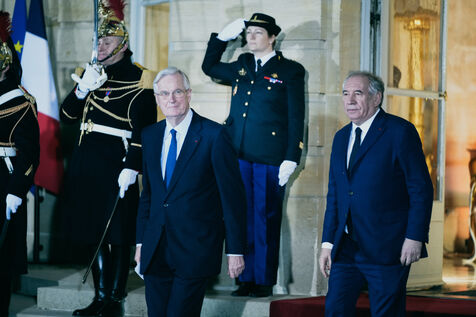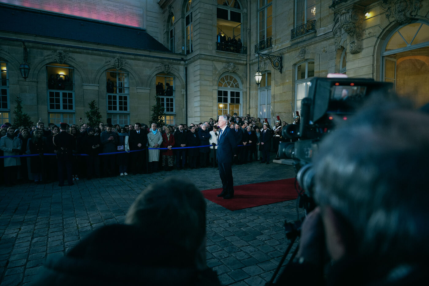 Handover of power between Michel Barnier former prime minister and Francois Bayrou prime minister at the Matignon Hotel in Paris France on December 13 2024.