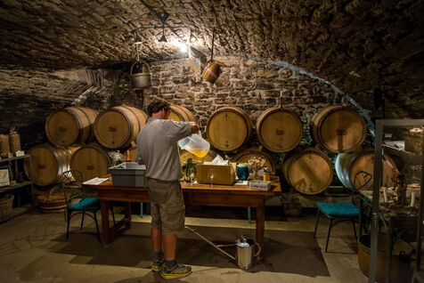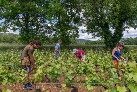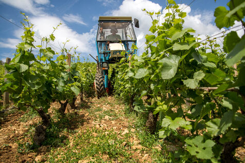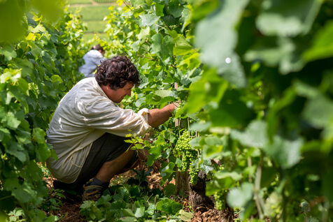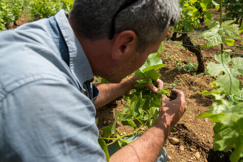 Summer is the time for green work. The bunches of grapes start to appear - it's flowering time. The vine's vegetation has grown considerably, and it's time to cut back all the leaves that prevent the sun from ripening the grapes. The grapes begin to take on their final color - this is veraison.