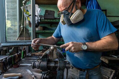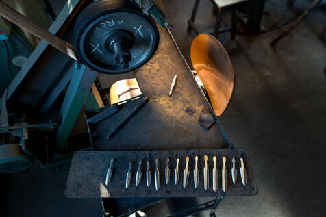 The Jacques Mongin cutlery workshop in Bieles, Haute-Marne, is renowned for the quality and beauty of its knives. La Coutellerie Mongin is one of the last remaining artisan workshops in France's Grand Est region. This small company has been in existence for over 60 years, perpetuating its unique know-how and the traditions of the Nogent region.