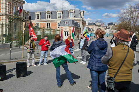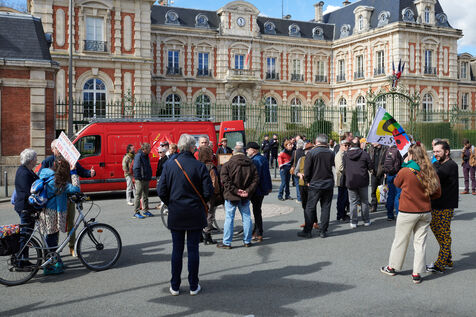 Manifestation à Chaumont devant la préfecture de Haute-Marne de LFI La France insoumise, avec le syndicat la CGT et le Parti Communiste Français contre l’extrême droite et contre le racisme. 22 mars 2025.