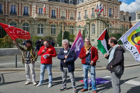 Demonstration in Chaumont in front of the Haute-Marne prefecture by LFI La France insoumise, with the union the CGT and the French Communist Party against the far right and against racism. March 22, 2025.
