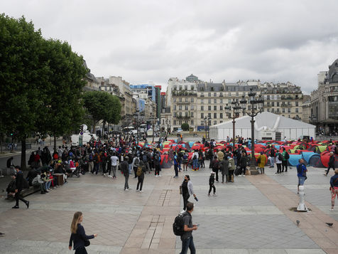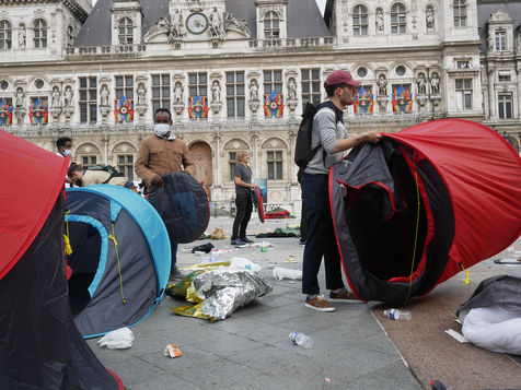 Evacuation of a migrant camp from the square in front of the city hall in Paris
