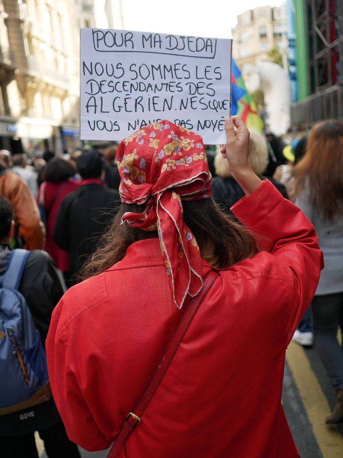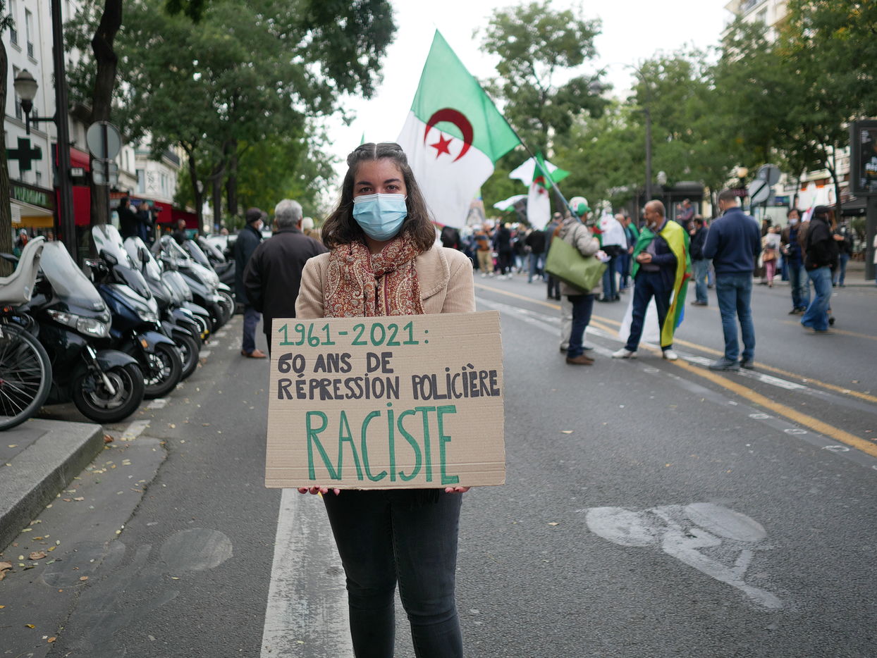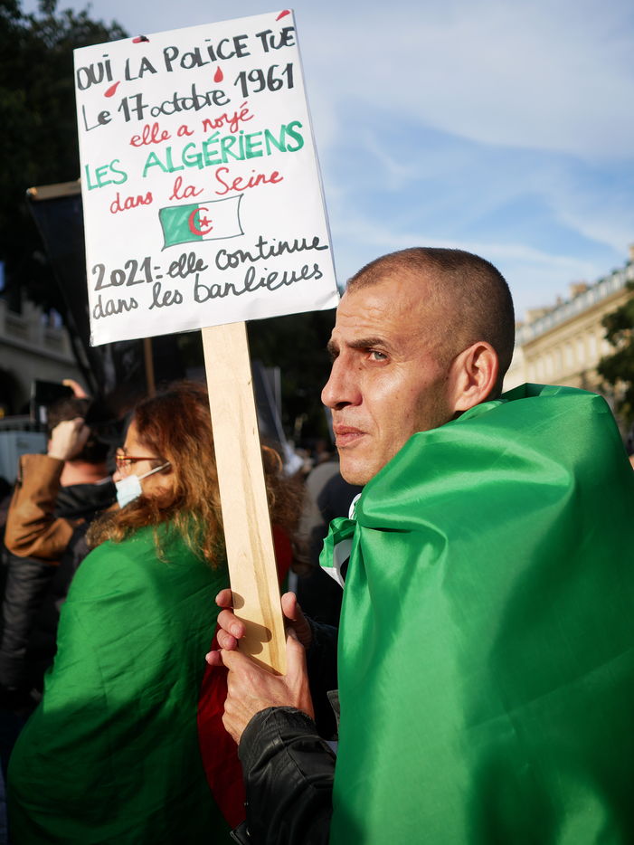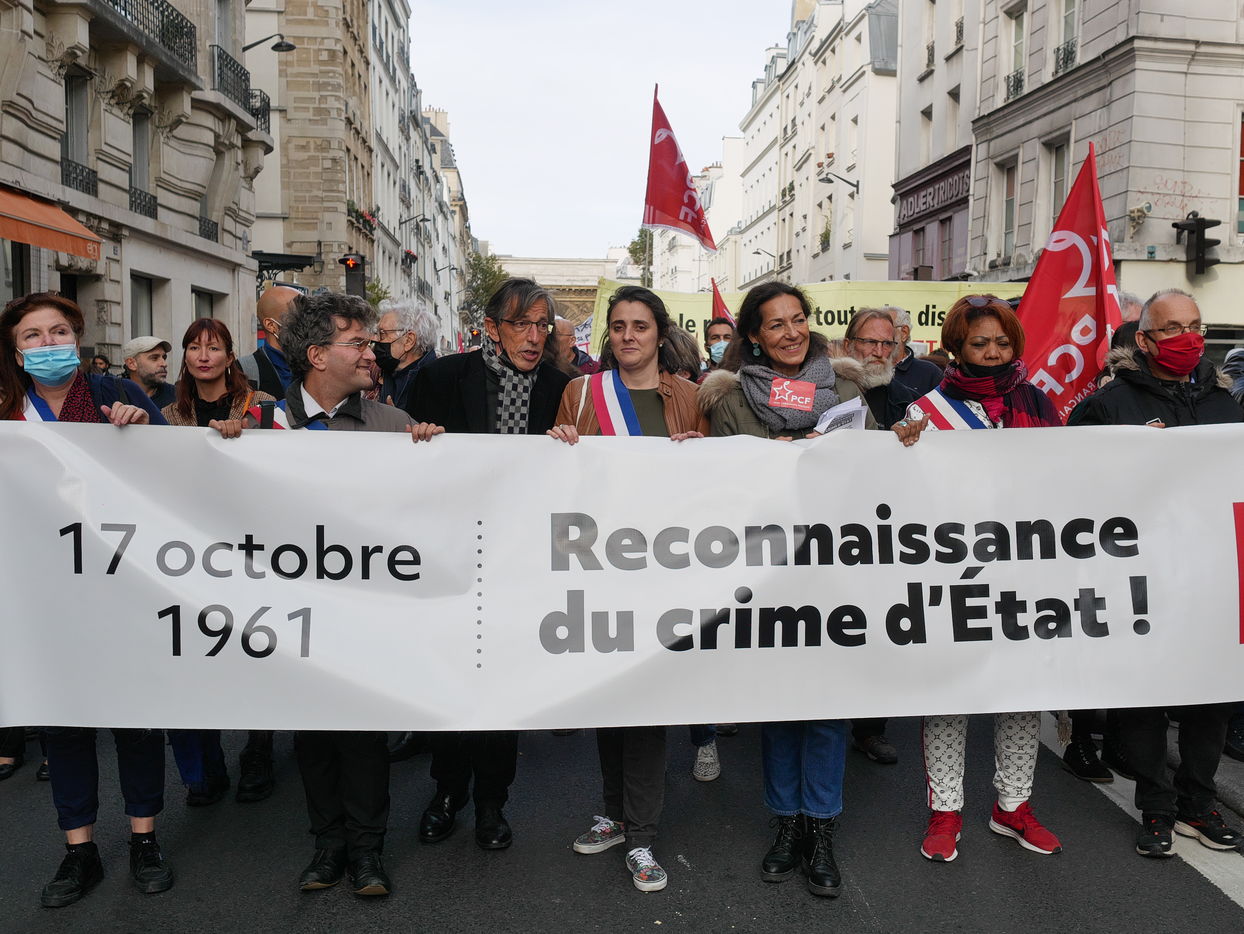 As a tribute to the "French Muslims of Algeria" murdered by the police in 1961 in Paris, the demonstrators demand that this event be officially recognised as a state crime.