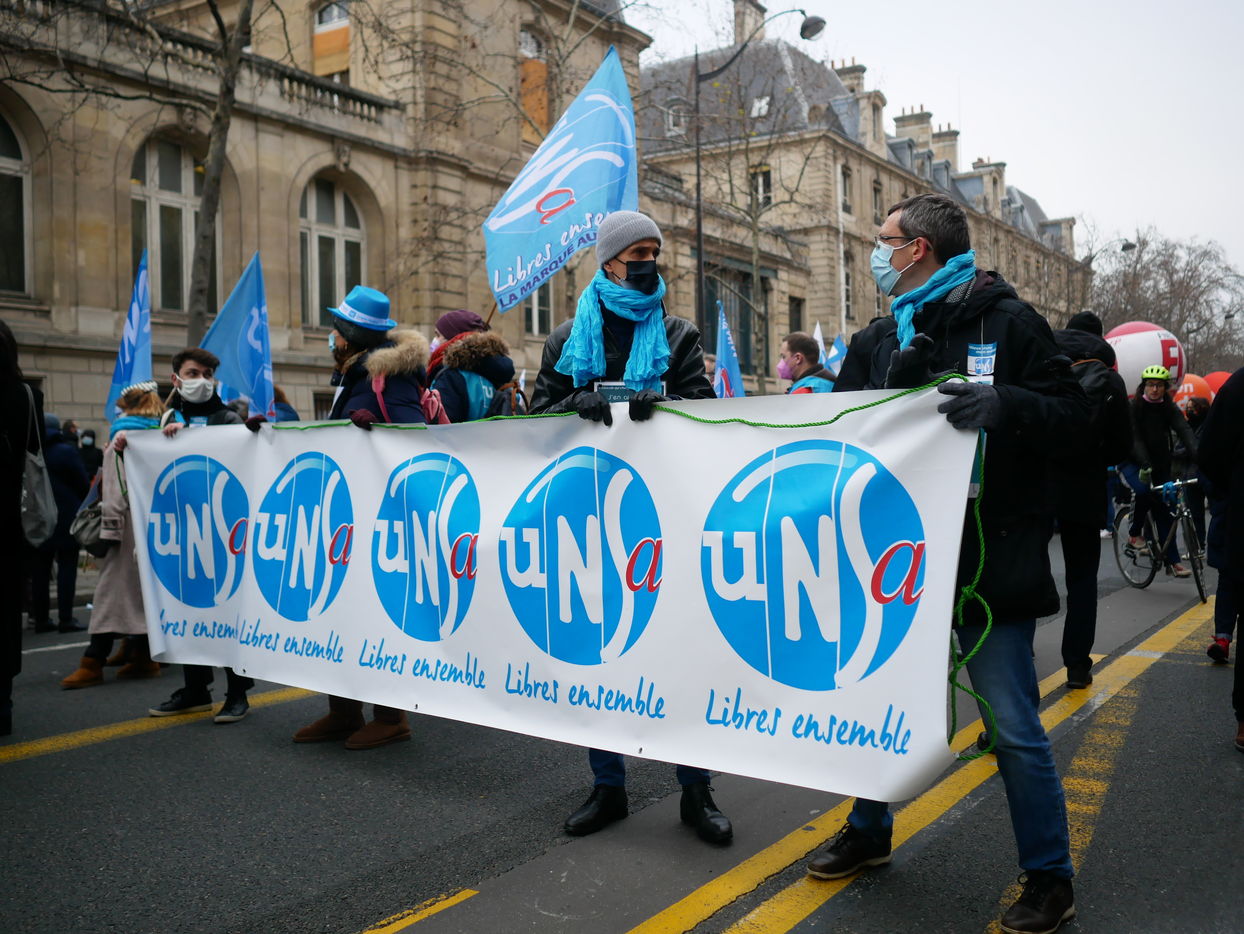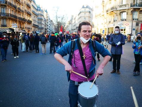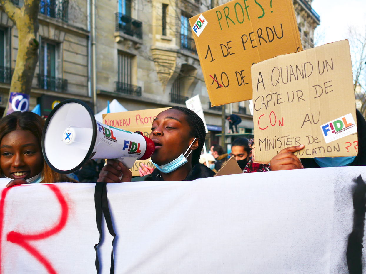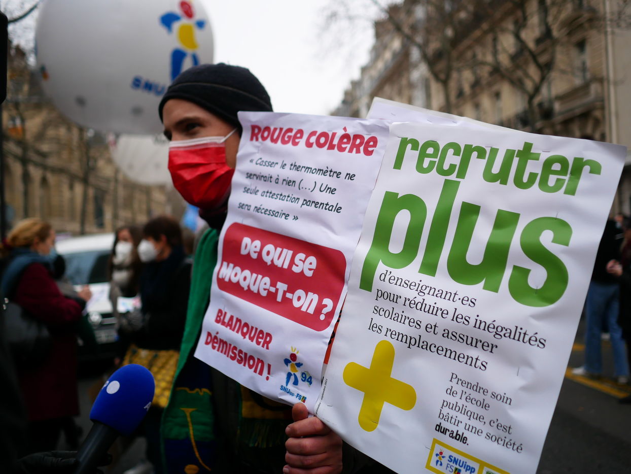 Les enseignants manifestent à Paris contre le protocole sanitaire dans les ecoles.