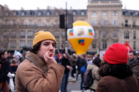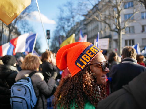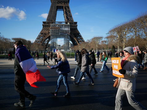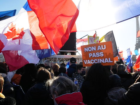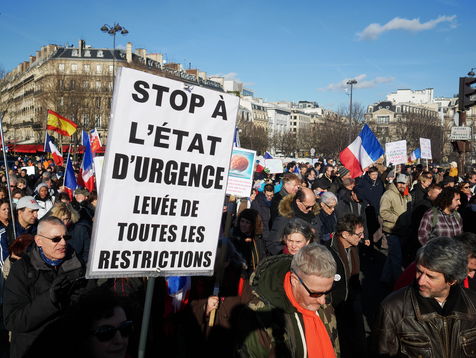 Florian Philippot and the Patriots demonstrate in Paris to protest against the vaccination pass which restricts the freedom of people refusing a vaccination against covid-19.