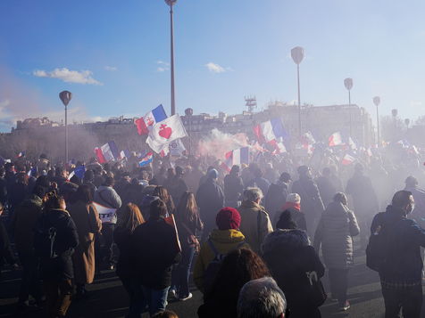 Florian Philippot et les Patriotes manifestent à Paris pour protester contre le pass vaccinal qui restreint les libertes des personnes refusant une vaccination contre le covid-19.