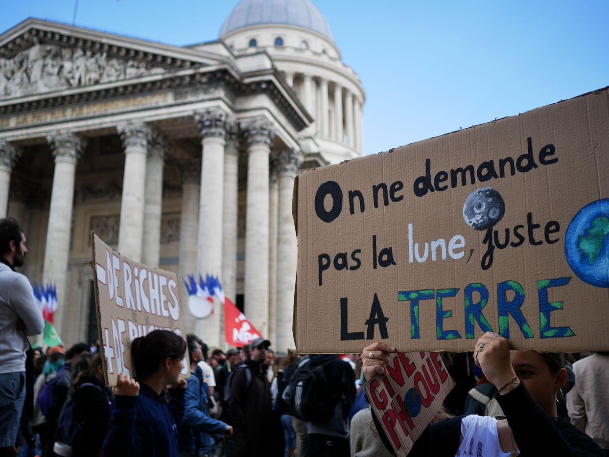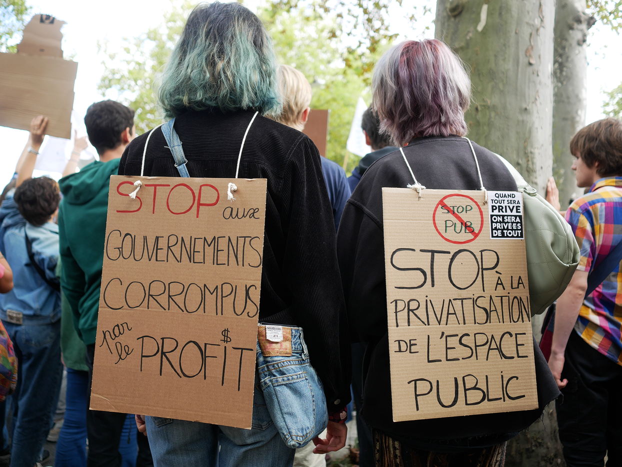 Day of mobilization for climate justice at the call of youth organizations, with claims "people not profit" or "stop advertising in the public space".