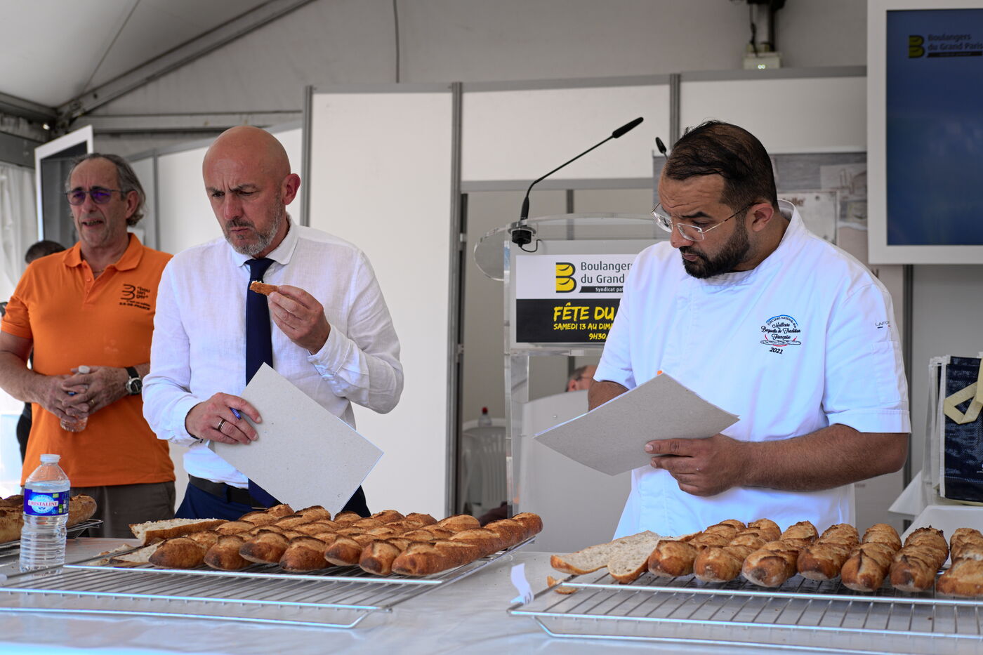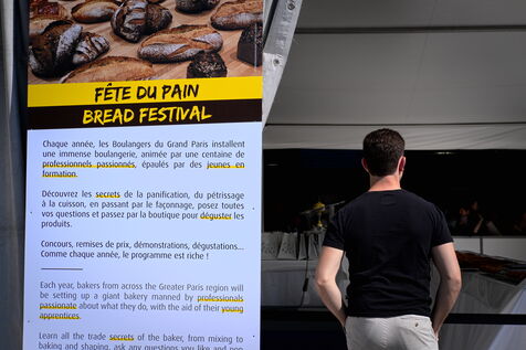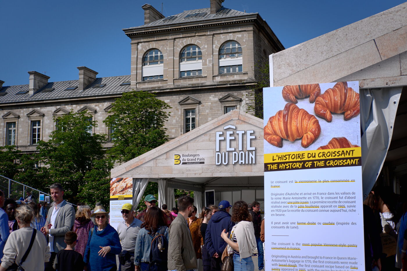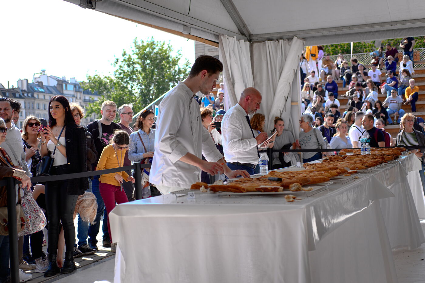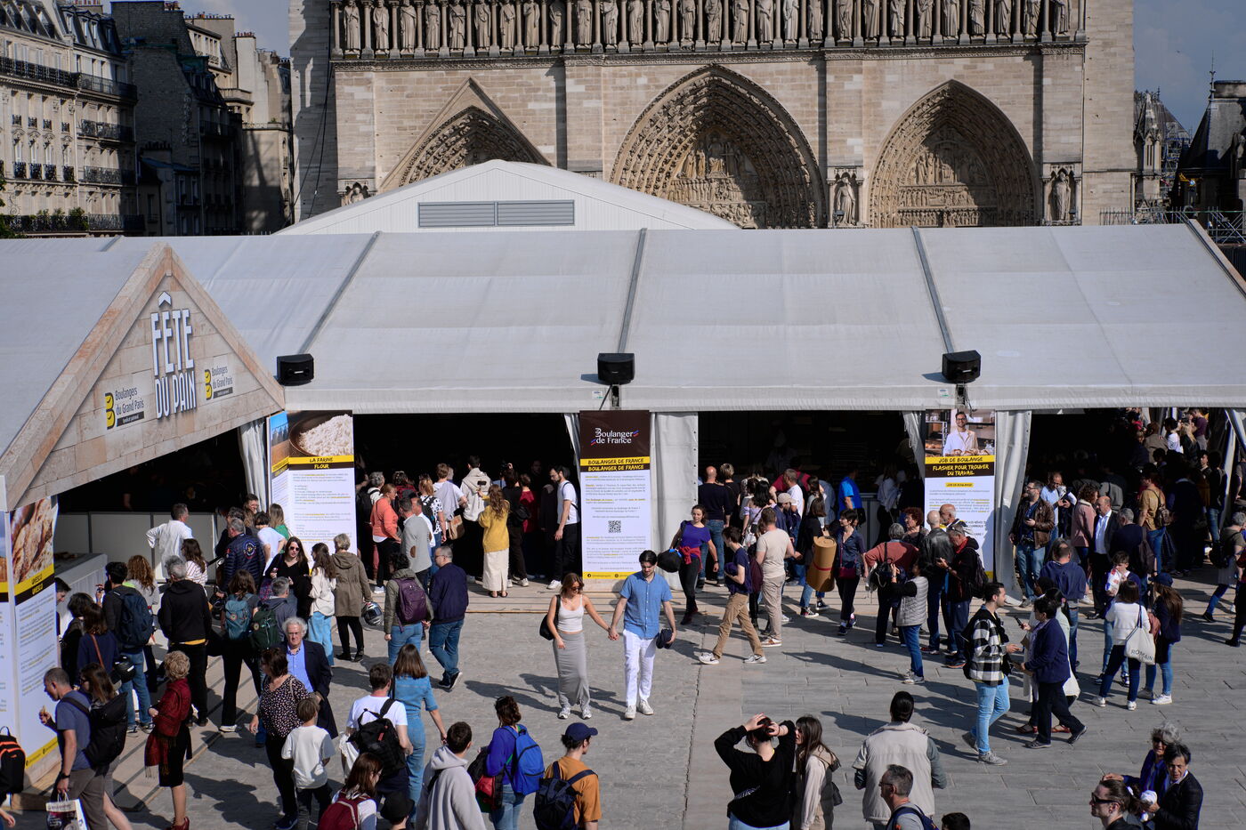 On the square in front of Notre-Dame de Paris, the bakers of the Ile-de-France region have set up a huge bakery to show the public how bread is made and organise a competition for the best baguette.