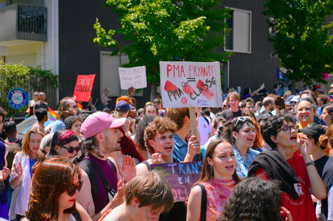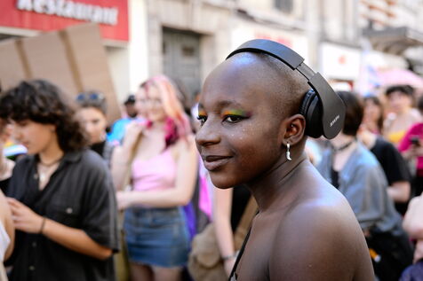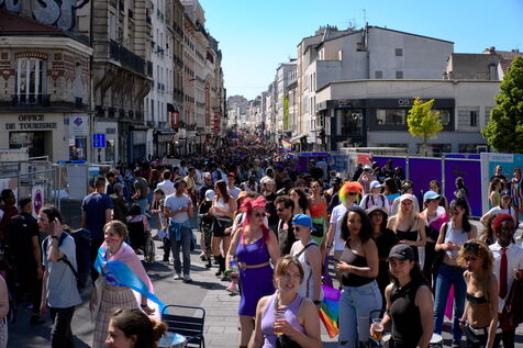 Marche des fiertés dans les rues de Saint-Denis pour faire entendre les revendications des LGBTQI+ de quartiers populaires, notamment l'égalité d'accès à la PMA.