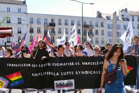 Pride march in the streets of Saint-Denis to voice the demands of LGBTQI+ people from working-class neighbourhoods, in particular equal access to MAP.