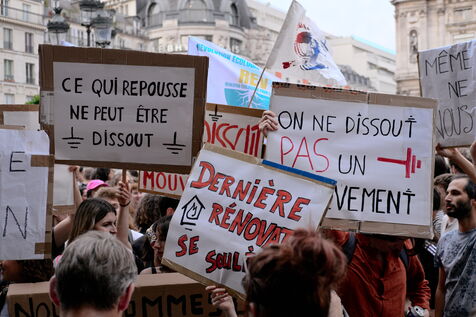 Rassemblement suite à la dissolution du collectif d'écologie militante Les Soulèvements de la Terre.