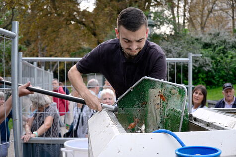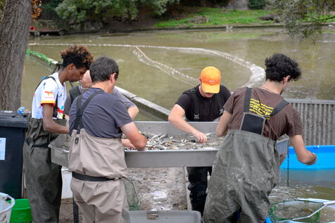 Back-up fishing to clean up the Buttes Chaumont lake. The fish will be released into the Ourcq canal and Parisian lakes.