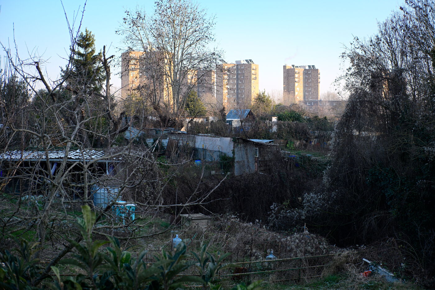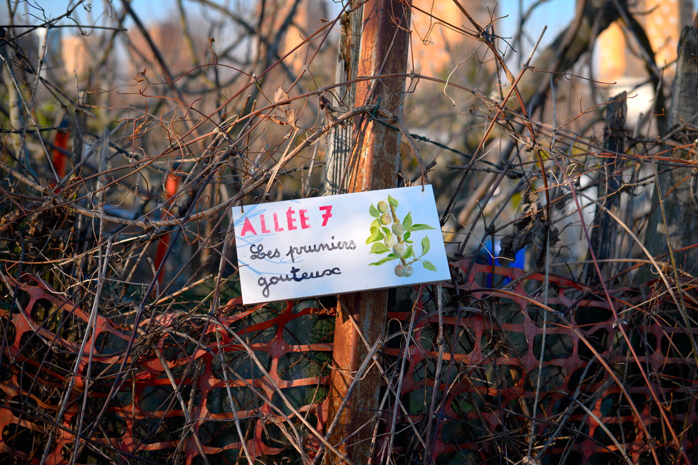 Cultivated for over a century, the Vertus allotments are located two kilometres outside Paris, between the moats of the Fort d'Aubervilliers and the Courtillières housing estate. In 2022, the twenty plots of land that had been destroyed to build the solarium for the 2024 Olympics water sports centre were finally restored to their original state, following action by three gardeners and the "Jardin à défendre" collective, who obtained a court order to halt the works. Today, this fertile land is once again under threat from a construction project: a station for the Grand Paris Express and a district of offices and hotels.