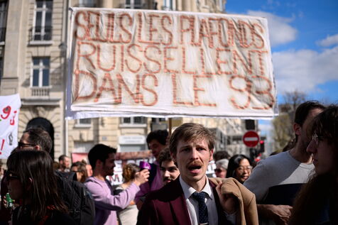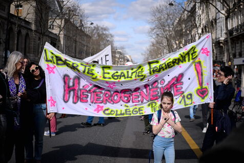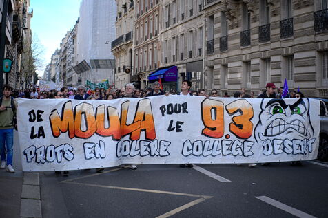 A l'appel des principaux syndicats , manifestation des enseignants et du personnel éducatif pour reclamer une revalorisation des salaires, l'abandon les groupes de niveaux et une hausse du budget alloué à l'Education nationale.