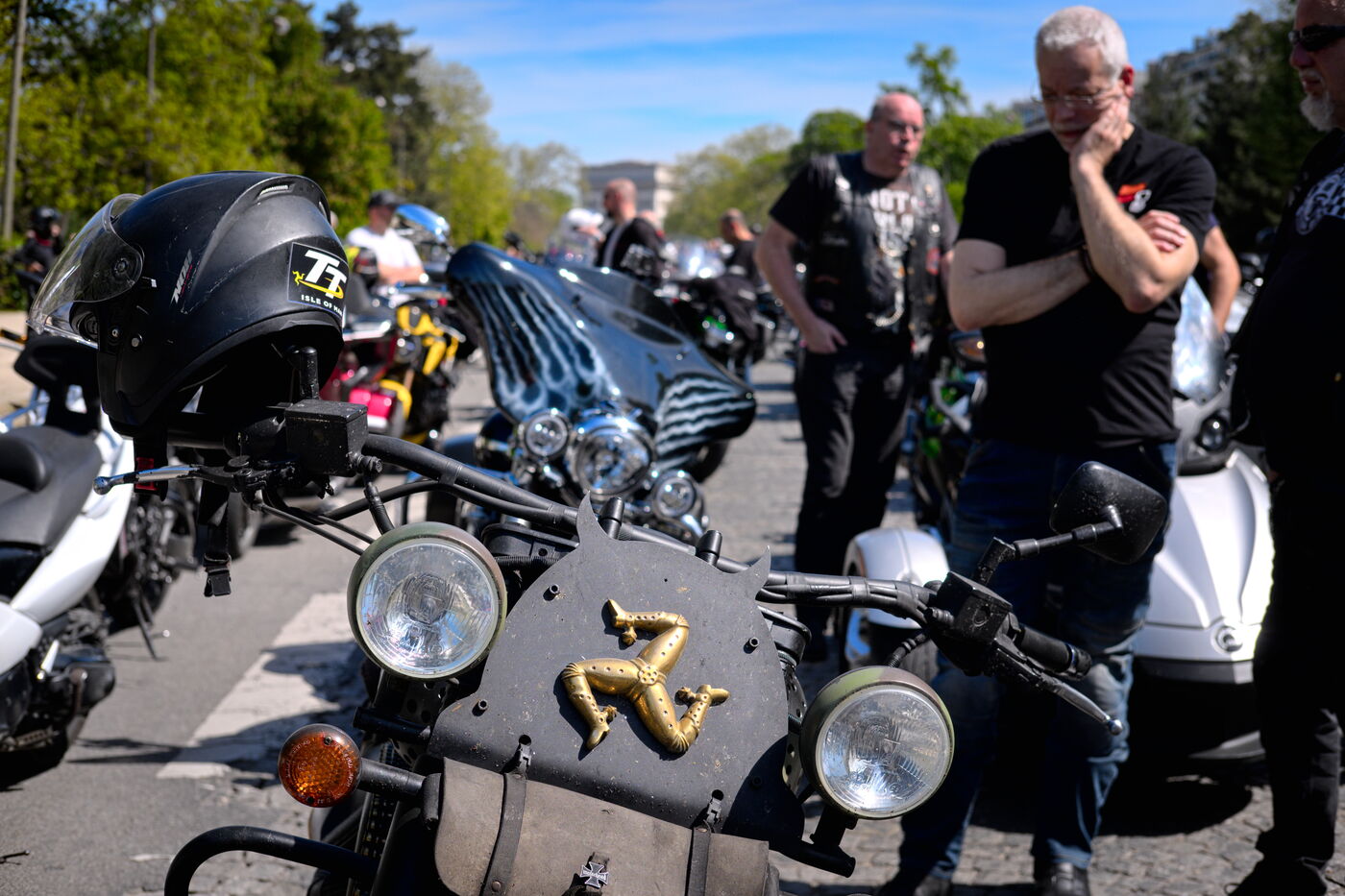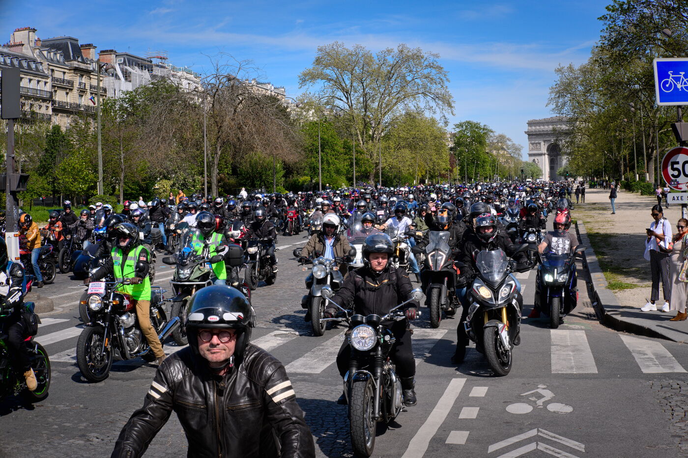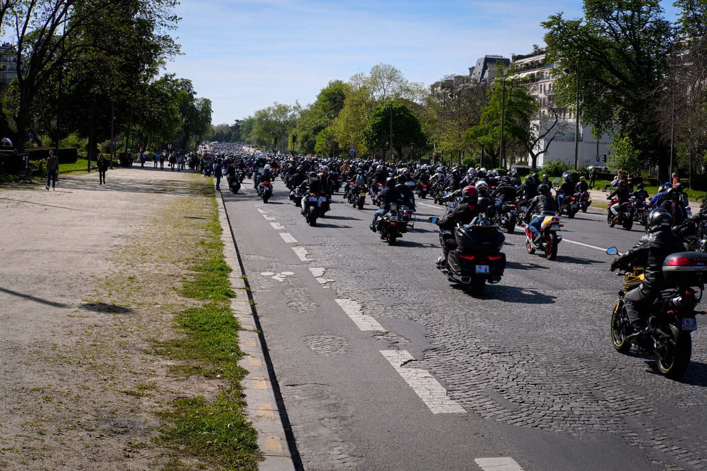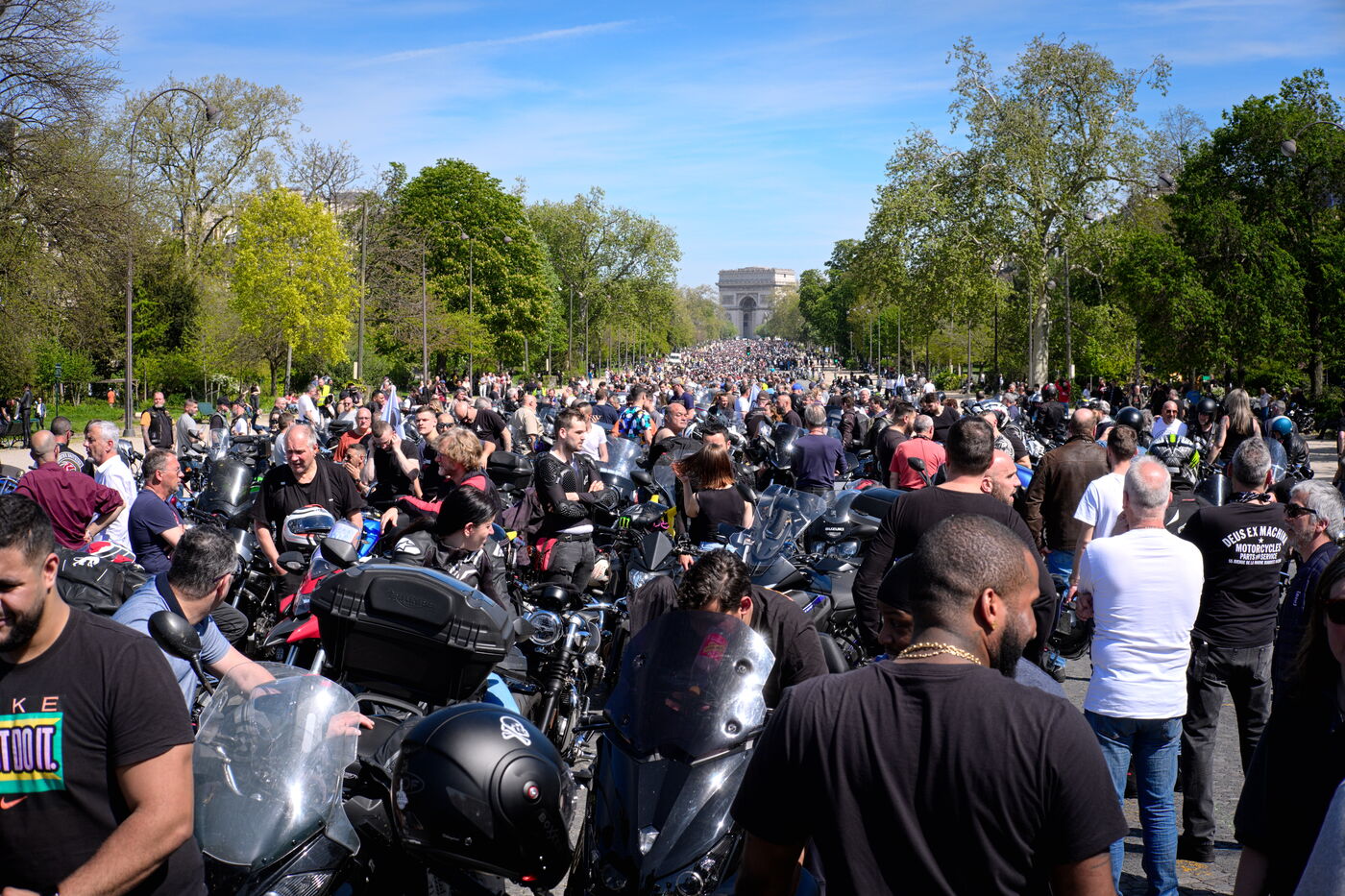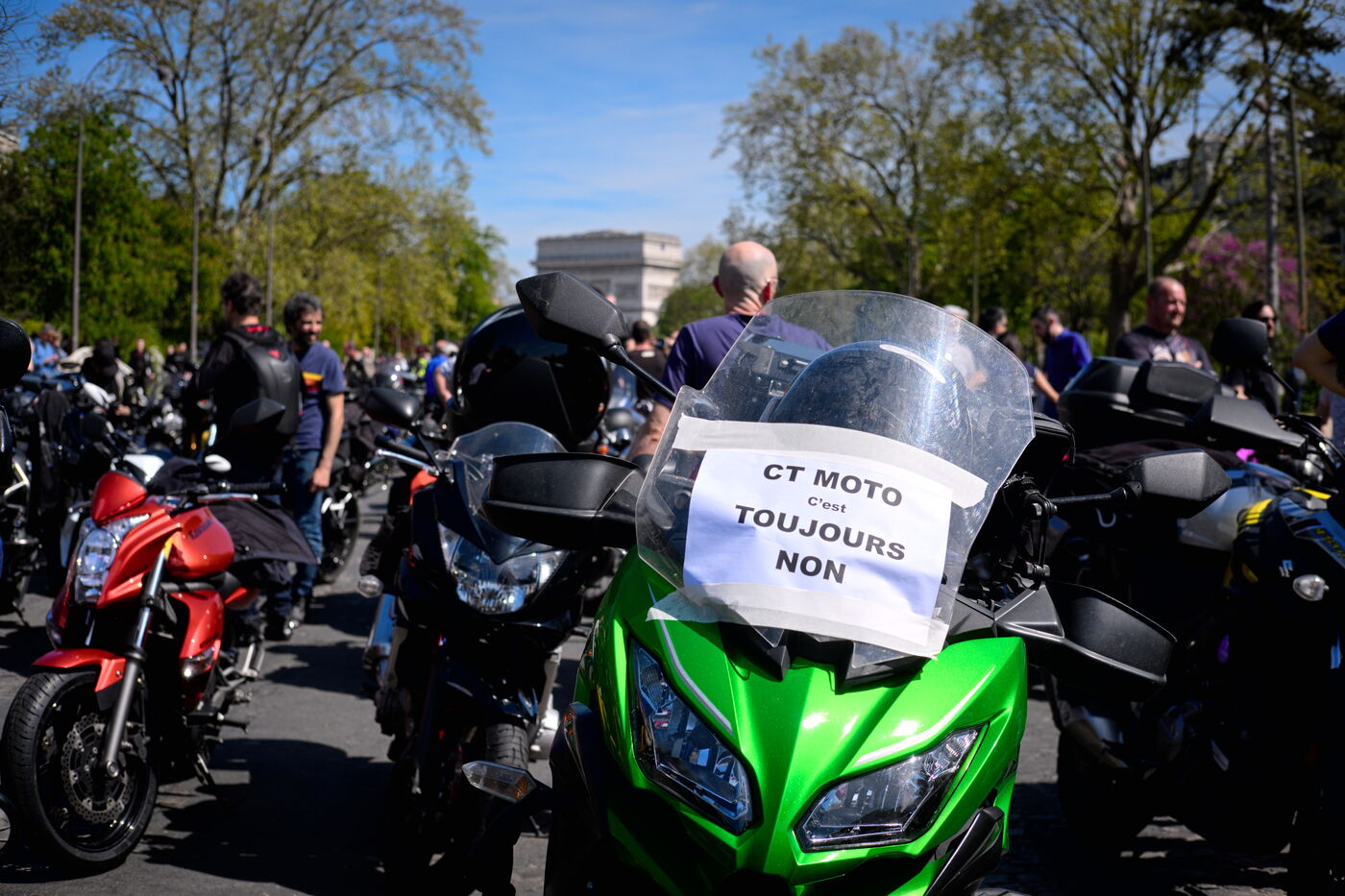 Demonstration against the introduction of compulsory roadworthiness tests for motorbikes, called by the Fédération française des motards en colère (French Federation of Angry Motorcyclists).