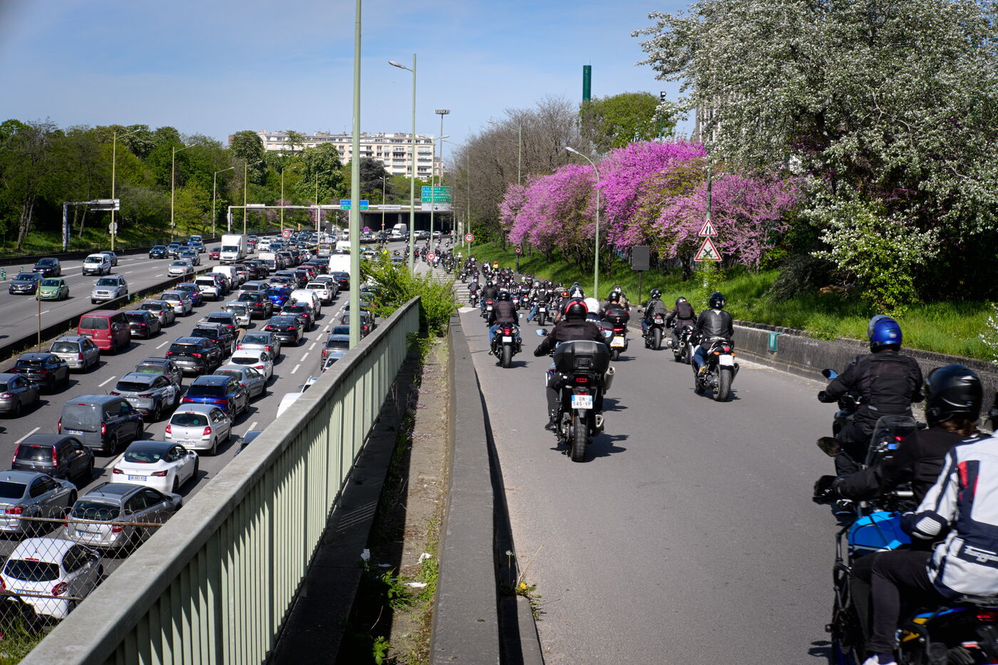 A l'appel de la Fédération française des motards en colère, manifestation contre la mise en place du contrôle technique obligatoire pour les motos.