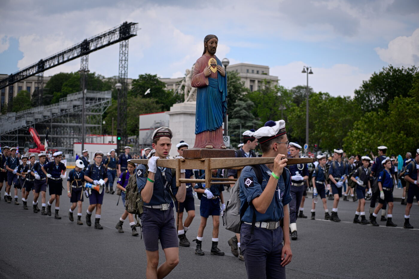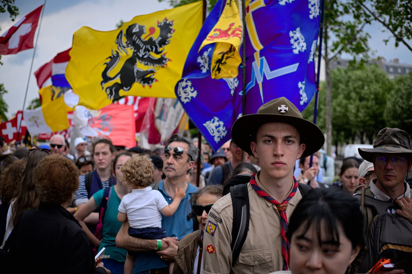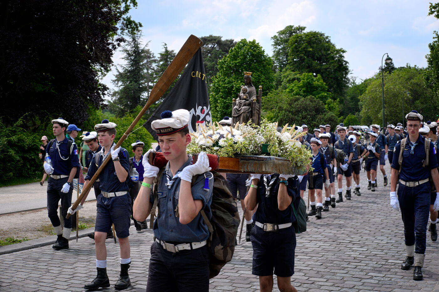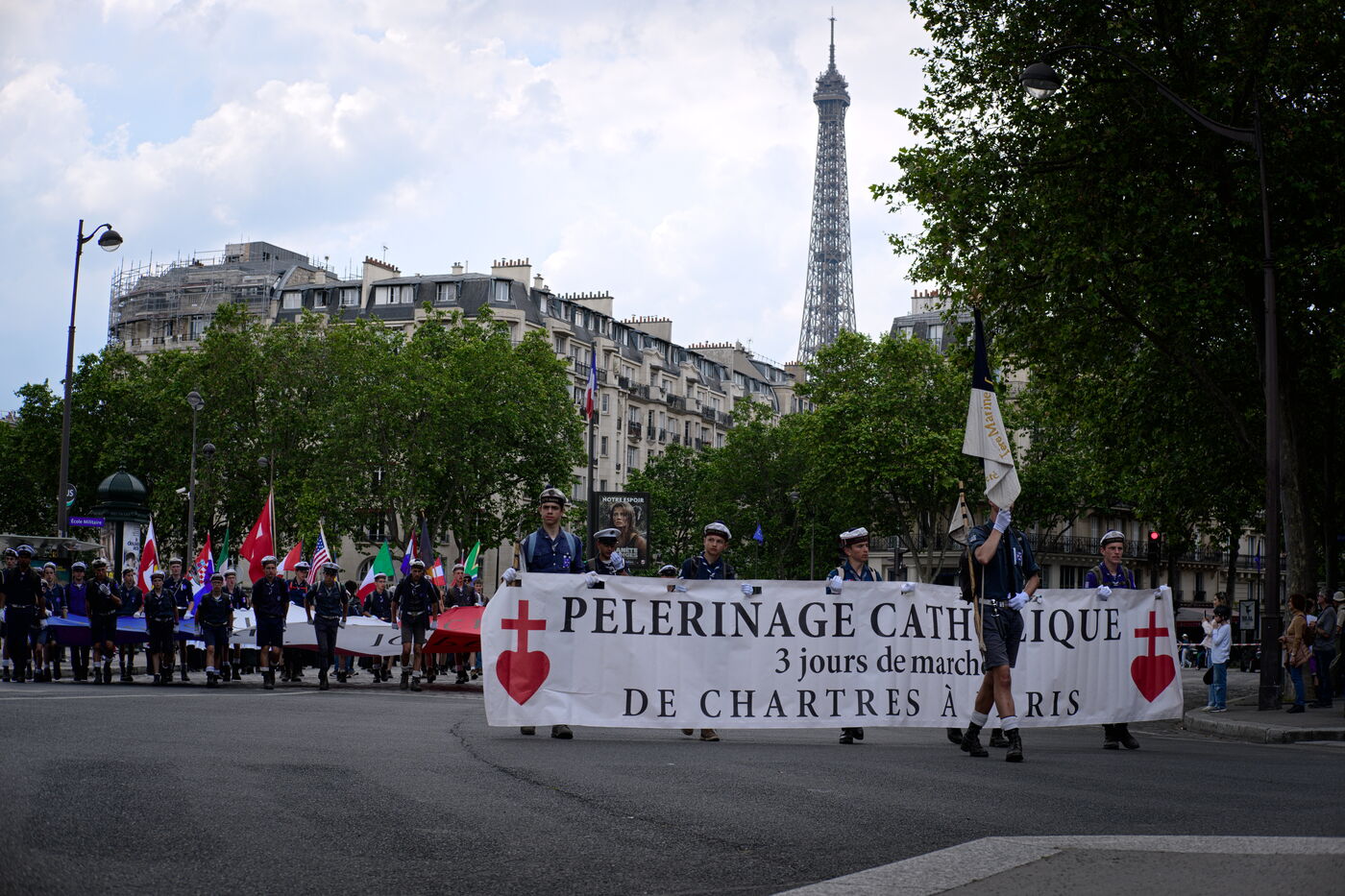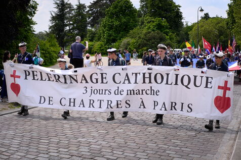 Pentecost pilgrimage of the Priestly Fraternity of St Pius X, a fundamentalist and nationalist branch of Catholicism at odds with the Vatican. The pilgrims walked between Chartres and Paris, where they were not allowed to celebrate Mass at Notre-Dame Cathedral.