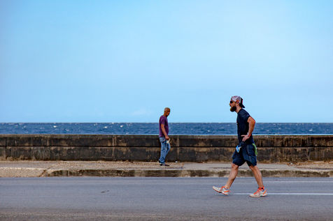 Surréaliste aussi par le désintérêt profond que lui témoigne la population havanaise. On croirait que pas une seule personne présente sur le Malecòn ne l'est pour la course, mais qu'elle est ici par hasard, par habitude, ou par nécessité. Les pêcheurs pêchent, les amoureux s?embrassent, et les pauvres coureurs épuisés par le soleil lourd de Cuba pourront toujours attendre les encouragements; cours toujours!