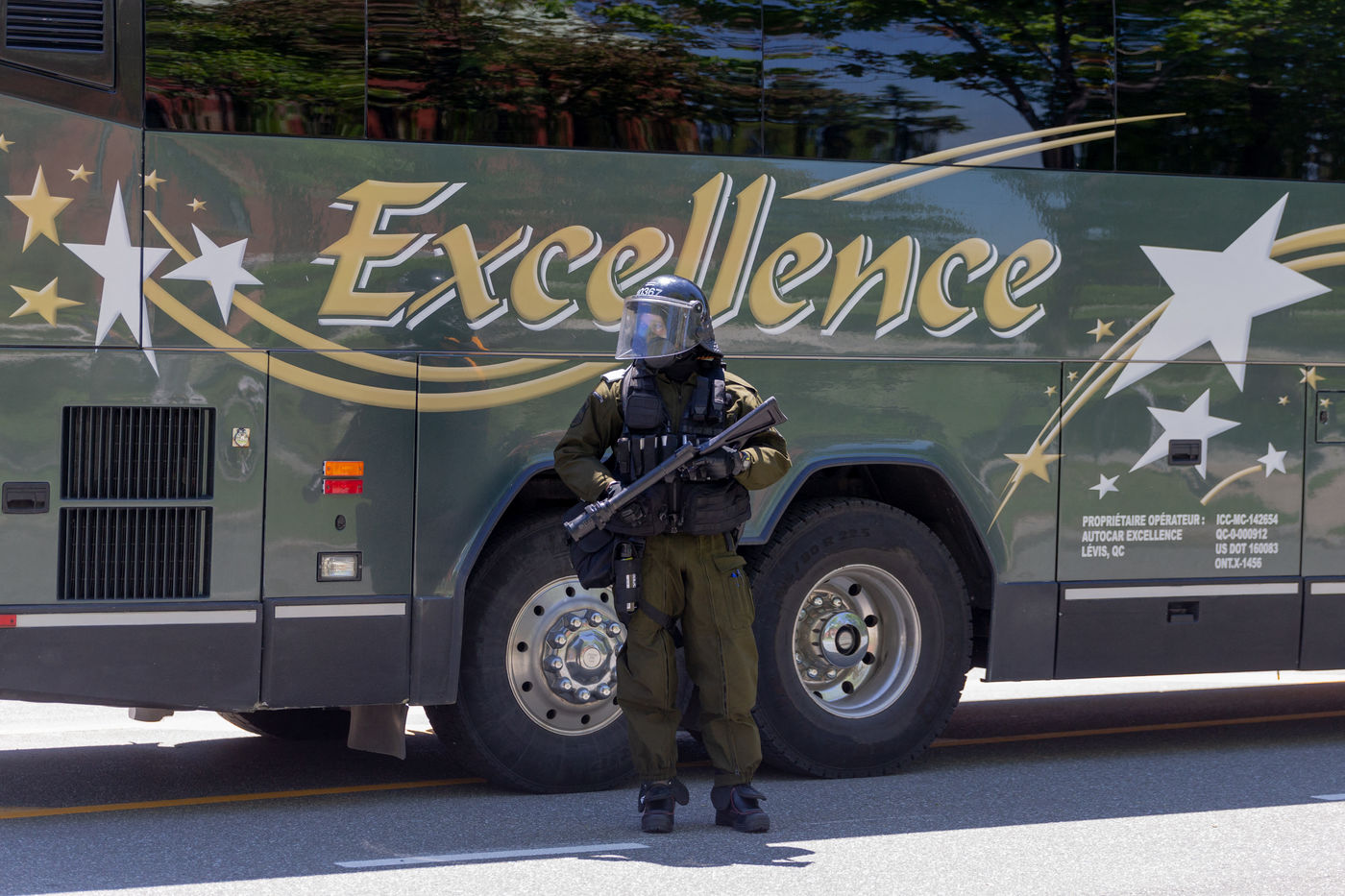 Les manifestations anti-G7 qui ont eu lieu le 1er jour du G7 ont été facilement controlées par la très forte présence policière déployée partout dans la ville. Quelques arrestations ont eu lieu, mais on est loin des émeutes redoutées.